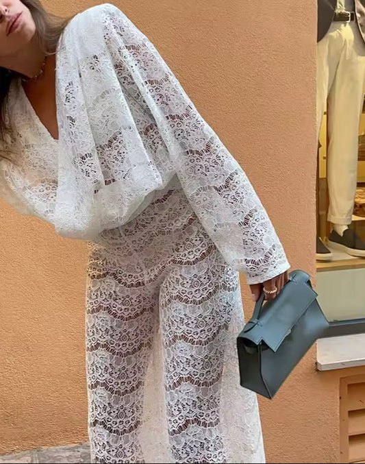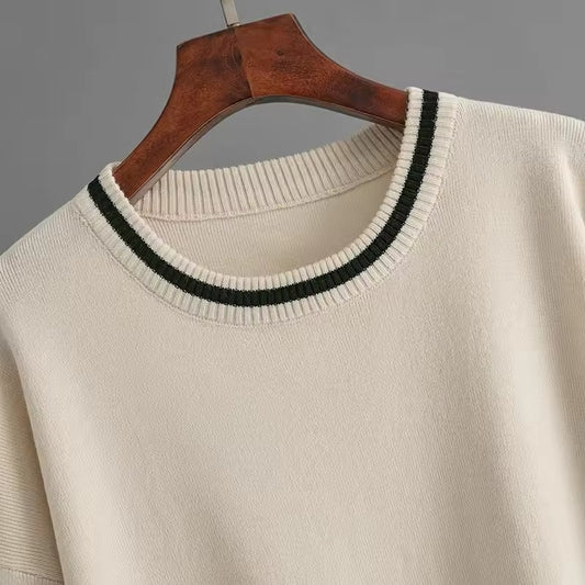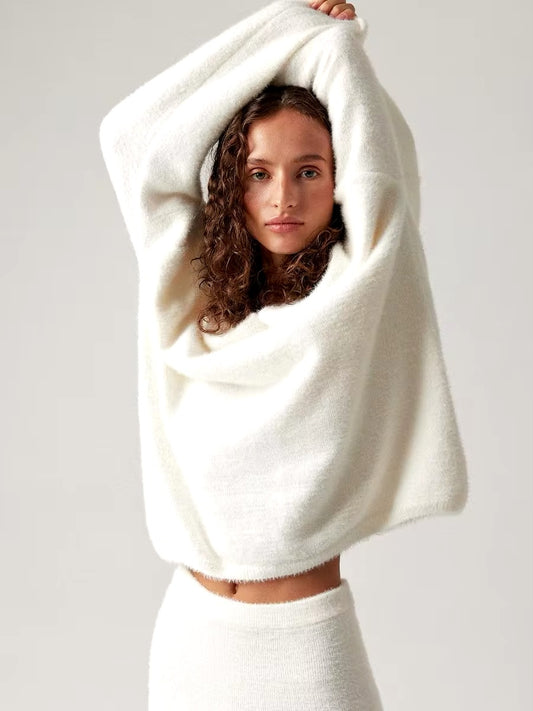 Eleganter Zweiteiler: Off-Shoulder Strickpullover im Slim Fit mit Lockeren Ärmeln