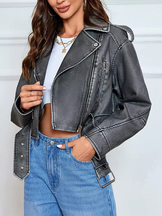 Frauen Faux Pu Lederjacke High Street Motorrad Mantel