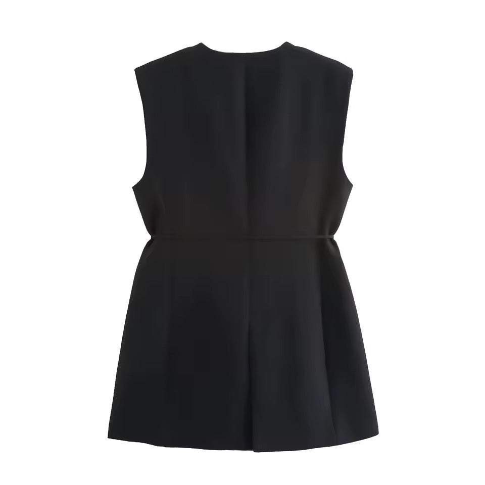 Elegantes Design: Ärmelloses Oberteil mit Split-Detail und Gürtel für einen femininen Look.