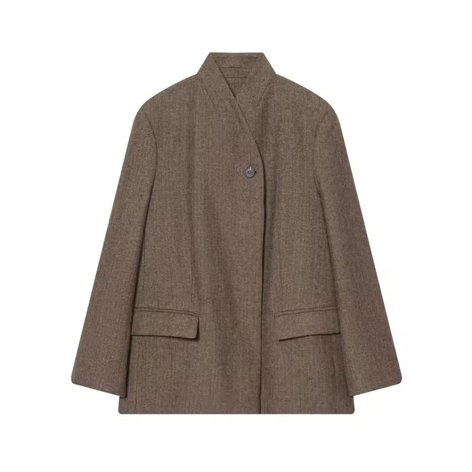 Der TFMLN Damen Blazer vereint moderne High-Street-Mode mit klassischer Business-Eleganz. Der edle Stehkragenverleiht der Anzugjacke eine klare, zeitgemäße Linie, während der Single-Button-Verschluss für eine schlanke und feminine Silhouette sorgt. Praktische Taschen runden das Design funktional und stilvoll ab.