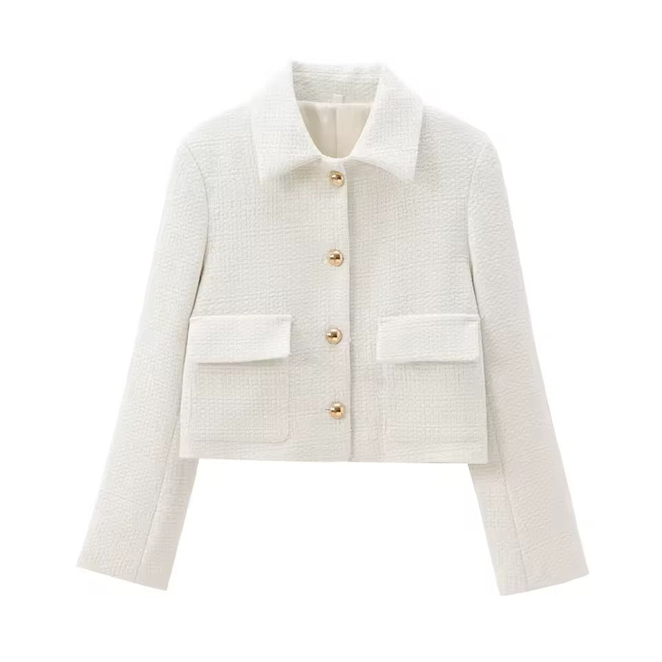Schick & Casual: Einfarbige Jacke mit dekorativen Knöpfen für einen modernen Look.