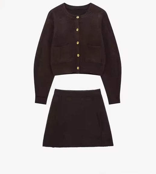 Tauche ein in den angesagten Streetstyle-Trend 2025 mit diesem zweiteiligen Strick-Set in warmem Braunton. Die fein gestrickte Strickjacke mit klassischem O-Ausschnitt und stilvollen Knöpfen sorgt für einen eleganten Touch, während der Minirock mit elastischer Taille deine Figur gekonnt in Szene setzt – komfortabel & trendy zugleich.