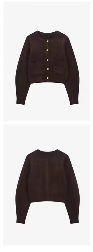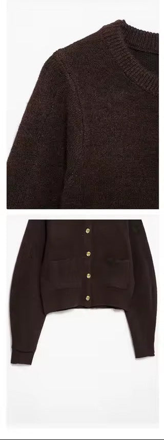 ✔ Gestrickte Einreiher-Strickjacke mit O-Ausschnitt & Taschen