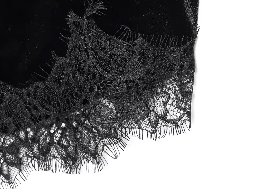 Dieses elegante Winter-Midi-Kleid aus luxuriösem Samt und zarter Spitze vereint Stil, Wärme und feminine Eleganz. Inspiriert von den neuesten europäischen und amerikanischen Trends 2025, überzeugt es durch ein raffiniertes Straps-Design, das subtile Sinnlichkeit mit edler Wintertauglichkeit verbindet.