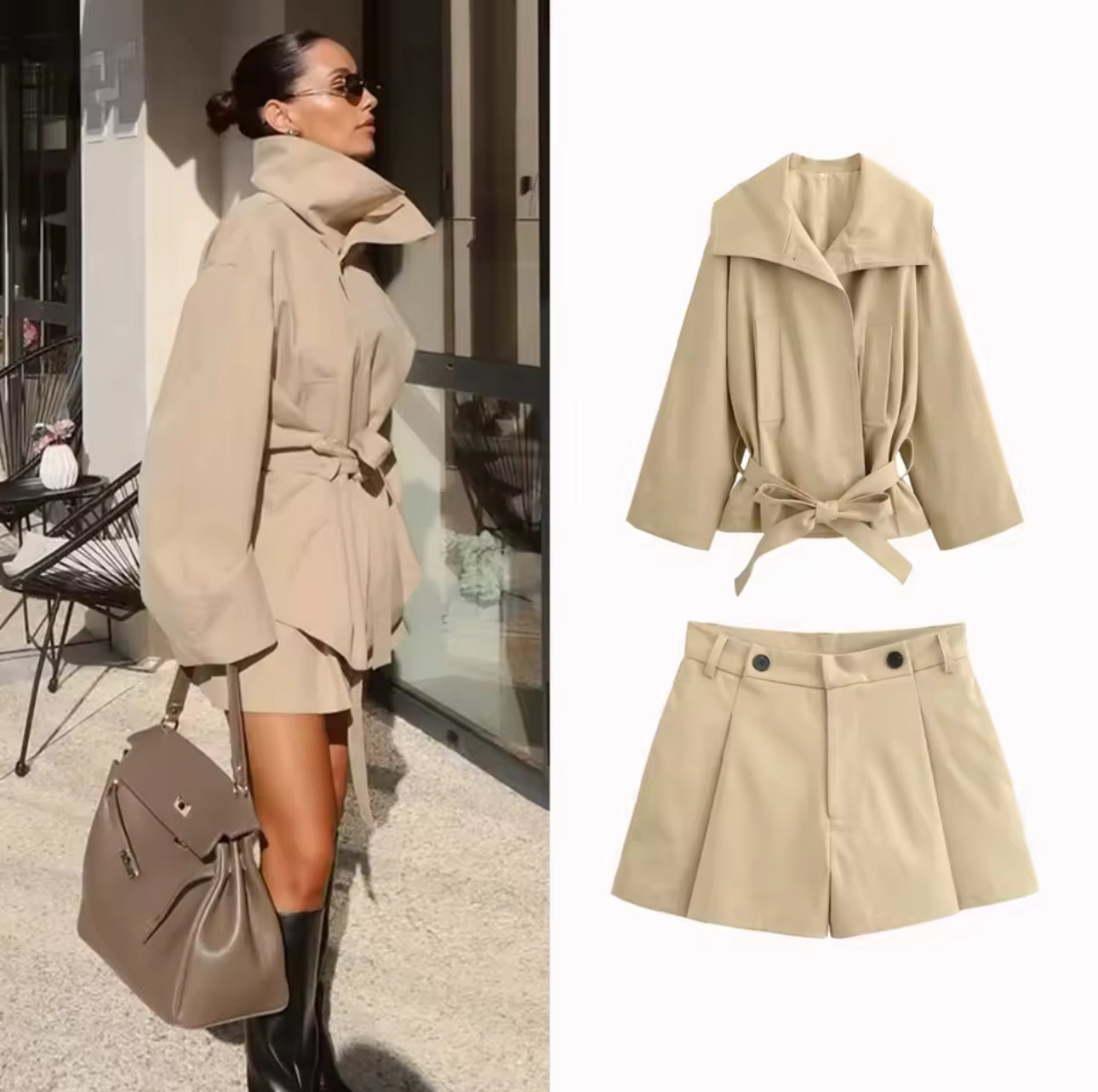 Bringe deinen Herbst-Look auf ein neues Level mit diesem stylischen Zweiteiler-Set für Damen. Dieses Outfit kombiniert urbanen Streetwear-Charme mit femininer Eleganz und einem Hauch von Business-Chic.