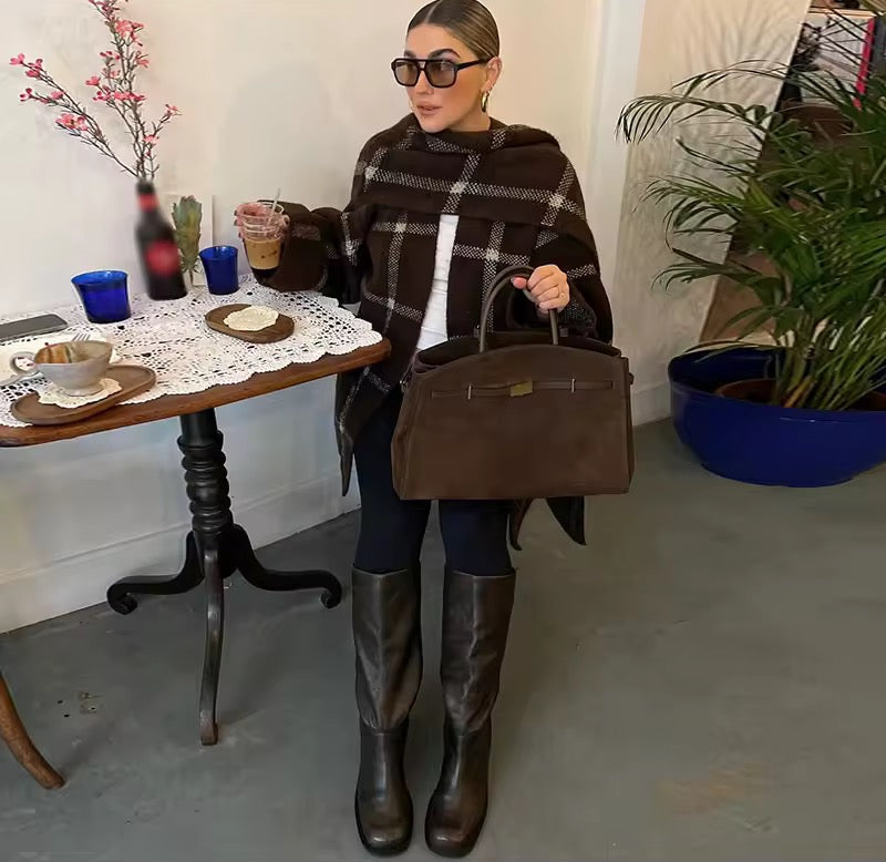 Diese elegante Damen-Strickjacke ist ein Must-have der Herbst/Winter-Kollektion 2025 – perfekt für Frauen, die Stil und Komfort lieben. Das karierte Strickdesign kombiniert klassische Eleganz mit moderner Lässigkeit, während der Schal-Kragen für zusätzlichen Wärmekomfort und einen edlen Look sorgt.