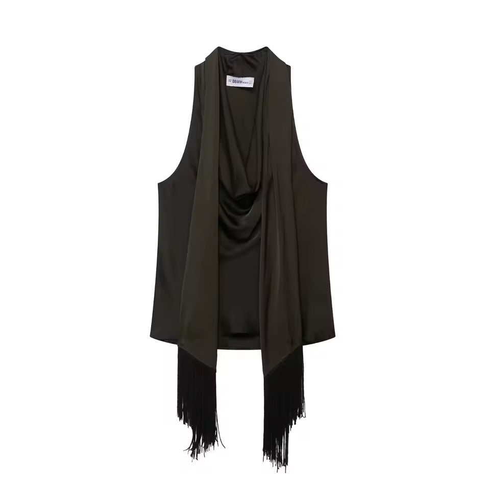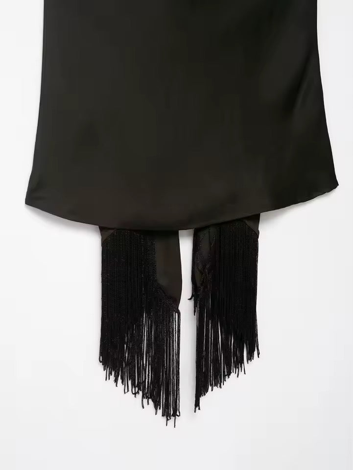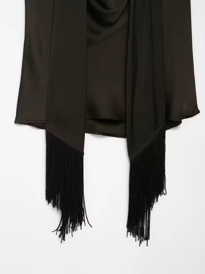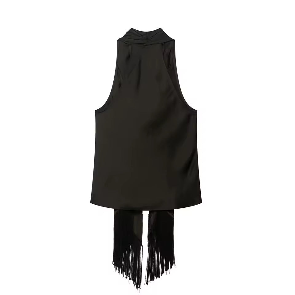 Bringe diesen Sommer dein Party-Outfit auf das nächste Level! Unser neues Quasten-Satin-Haltertop für Frauenvereint Eleganz und sexy Stil. Das rückenfreie Design sorgt für einen verführerischen Look, während die feinen Quasten-Details dem Top eine verspielte Note verleihen.