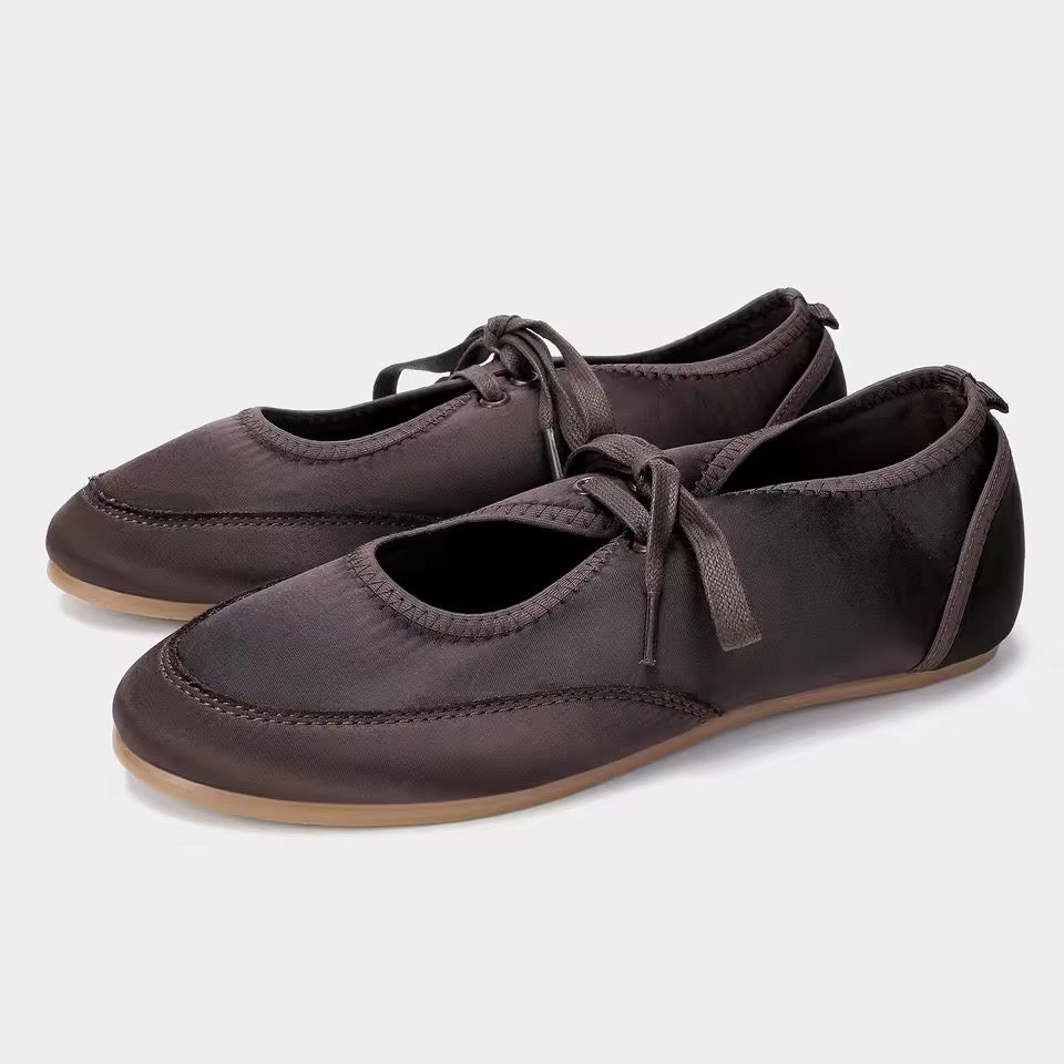 Diese lässigen Walking Ballerinas sind die perfekte Kombination aus Komfort und Stil. Ob beim Stadtbummel, im Büro oder auf dem Weg ins Café – diese Schnürschuhe aus weichem Stoff bieten den ganzen Tag über ein angenehmes Tragegefühl.