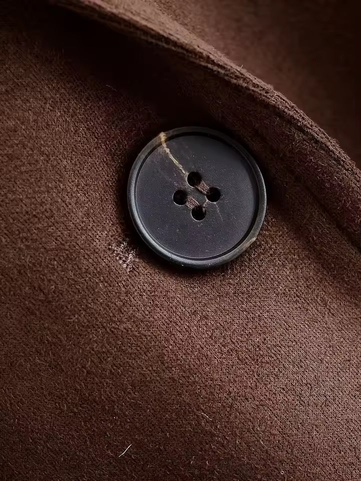 Diese stilvolle Windjacke überzeugt mit ihrem klaren, europäischen Design und einem hochwertigen Wildleder-Look. Der klassische Anzugkragen und der taillierte Schnitt mit Bindegürtel verleihen ihr eine elegante Silhouette, während das einfarbige Design sie zu einem echten Allrounder im Kleiderschrank macht. Ob für’s Büro, die Stadt oder ein Dinner – diese Jacke passt zu fast jedem Outfit und Anlass.