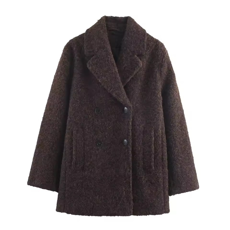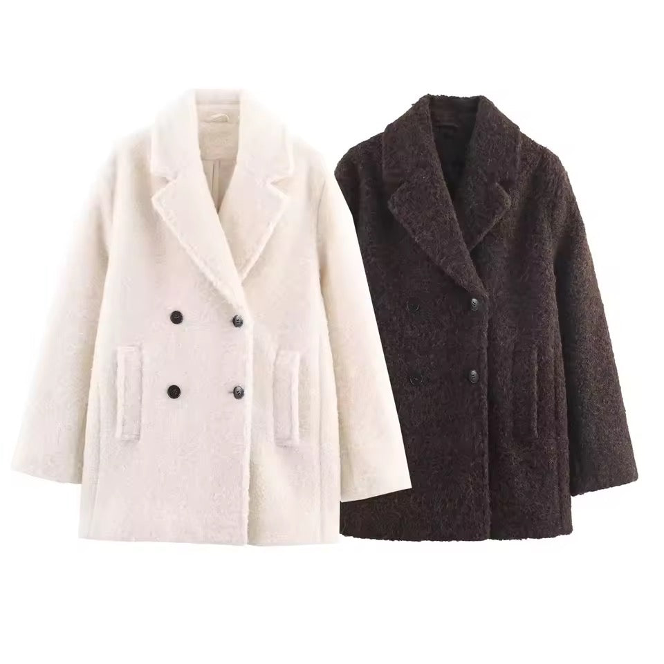 Klassisch, edel und angenehm warm – dieser zweireihige Wollmantel für Damen ist das Must-have der Herbst-/Winter-Saison 2025. Der lockere Schnitt sorgt für eine moderne, entspannte Silhouette, während das einfarbige Designund der Reverskragen zeitlose Eleganz ausstrahlen.