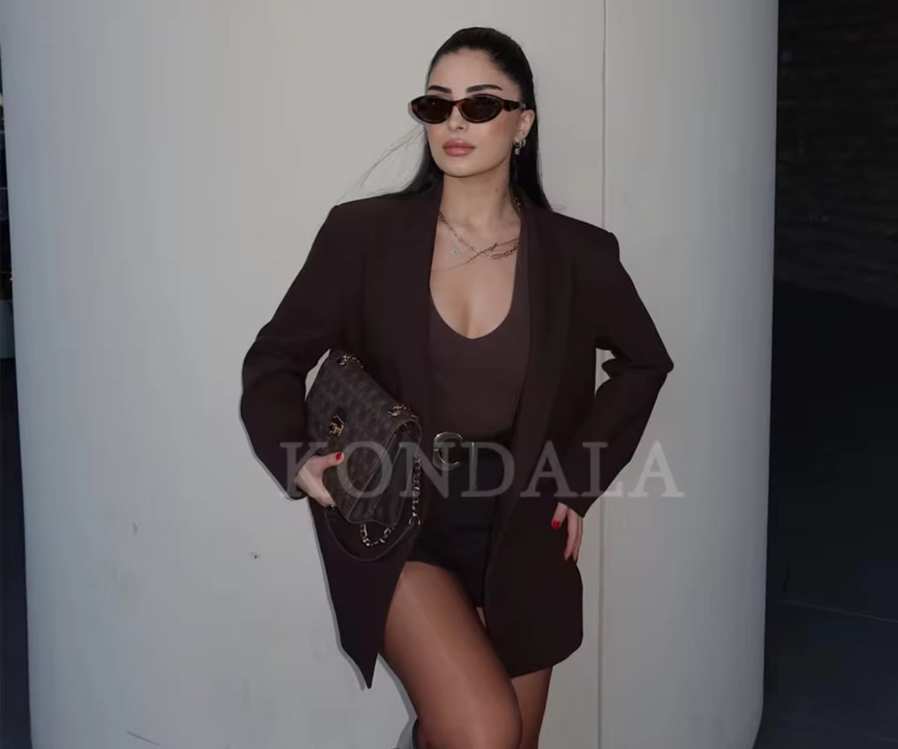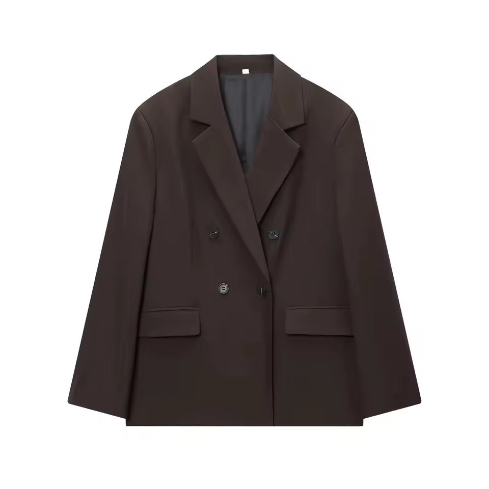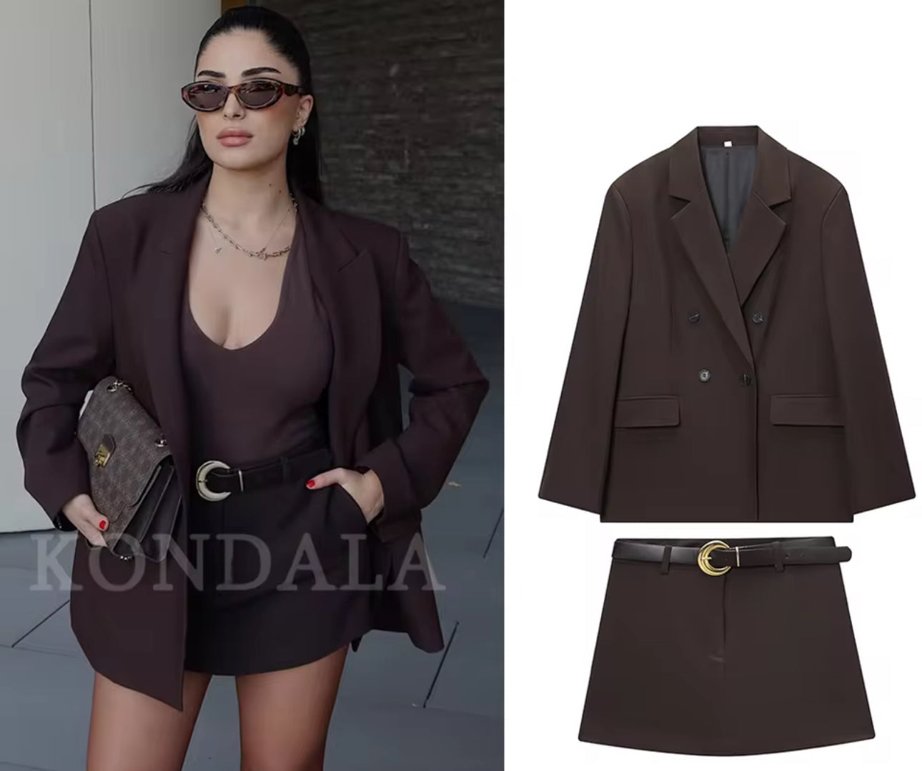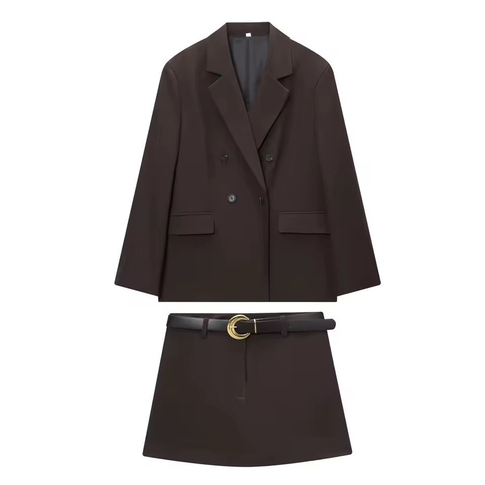 Das exklusive Damen-Set vereint modernen Business-Chic mit einem eleganten Vintage-Touch. In edlem Schokoladenbraun gehalten, präsentiert sich dieses Outfit als stilvolles Highlight für die modebewusste Frau im Jahr 2025.