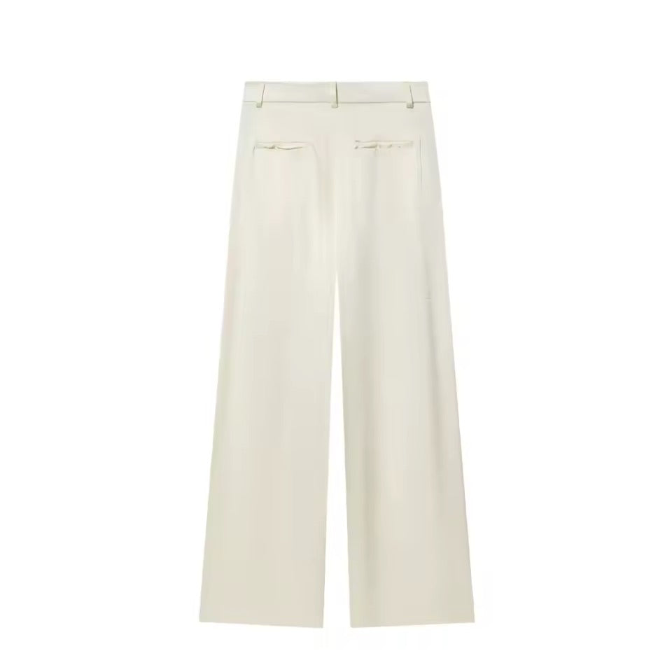 Die kurze Blazerjacke mit Puffärmeln und tailliertem Schnitt betont deine Figur, während der gefaltete Hosenbundmit geradem Bein eine edle, schlanke Silhouette zaubert.
