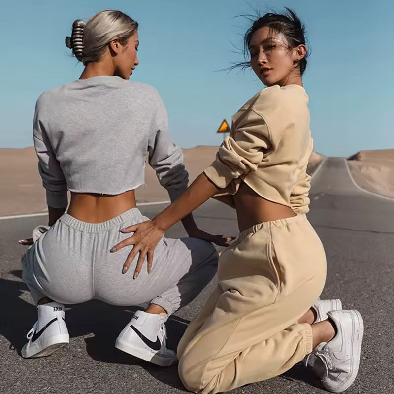Dieses zweiteilige Fleece-Trainingsanzug-Set für Damen bietet ultimativen Komfort und Style für die kalte Jahreszeit. Der übergroße Kapuzen-Hoodie mit langen Ärmeln sorgt für ein warmes, gemütliches Tragegefühl und verleiht dem Outfit einen modernen, entspannten Look.