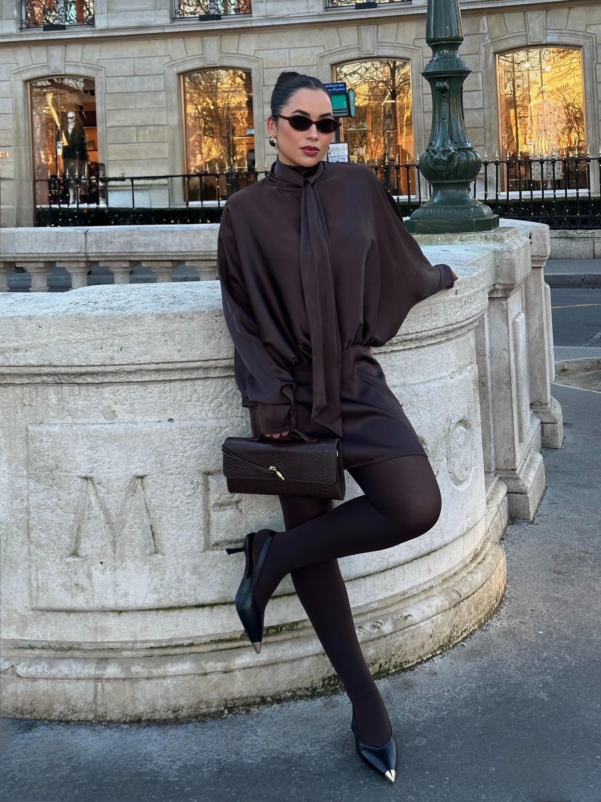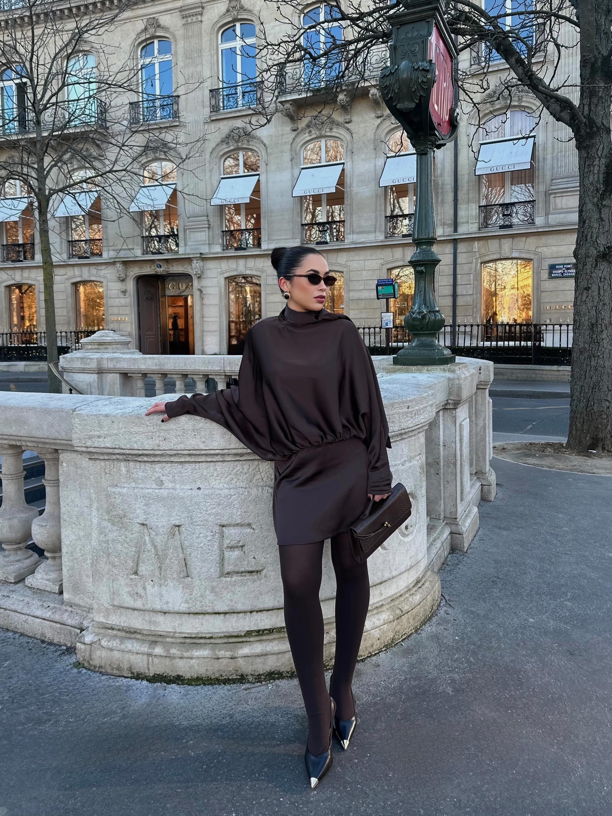 Dieses stilvolle Damen-Winterkleid im modernen amerikanischen Stil vereint zeitlose Eleganz mit aktueller Mode. Der figurbetonte Slim-Fit-Schnitt schmeichelt der Silhouette und sorgt für einen femininen, edlen Look. Die hochwertige Seiden-Satin-Textur verleiht dem Kleid einen dezenten Glanz und ein angenehm glattes Tragegefühl auf der Haut.