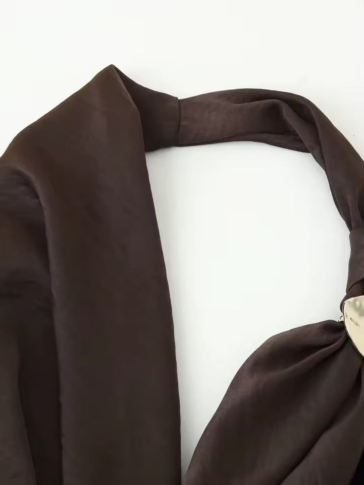 Modernes Design: Asymmetrischer Schnitt mit tiefem V-Ausschnitt für eine verführerische Silhouette.