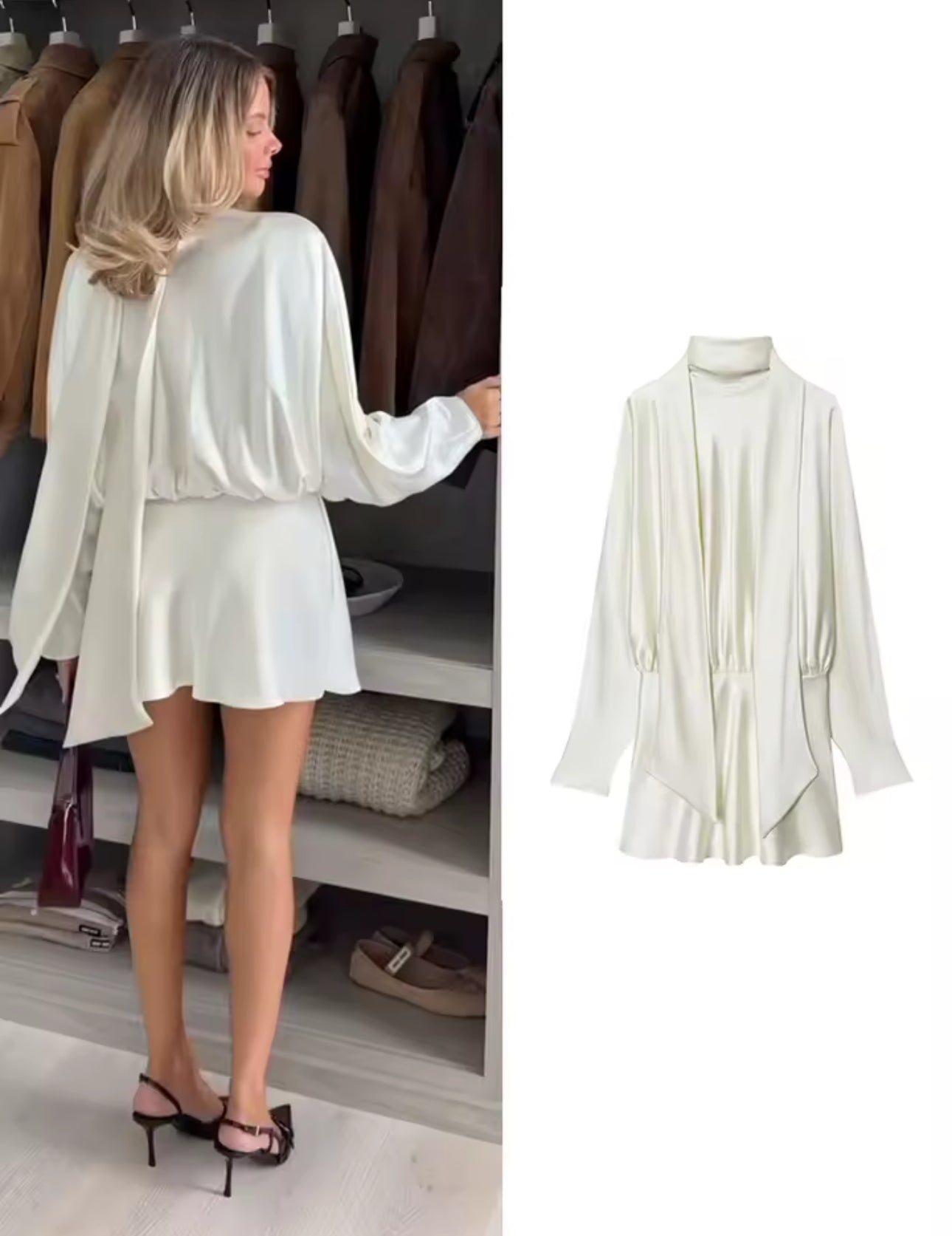 Gefertigt aus hochwertigem Polyester mit seidigem Satin-Touch, bietet das Kleid ein angenehm weiches Tragegefühl und einen sanften, luxuriösen Glanz. Ob im Alltag, im Büro oder zu besonderen Anlässen: Dieses Kleid setzt ein stilvolles Statement und lässt sich mühelos mit eleganten oder lässigen Accessoires kombinieren.