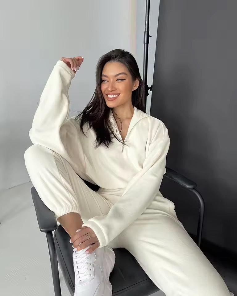 Die Kombination aus entspannter Passform und eleganter Linie macht dieses Herbst-Set zu einer perfekten Wahl für Pendlerinnen, Business-Casual-Outfits oder stilvolle Alltagsmomente.