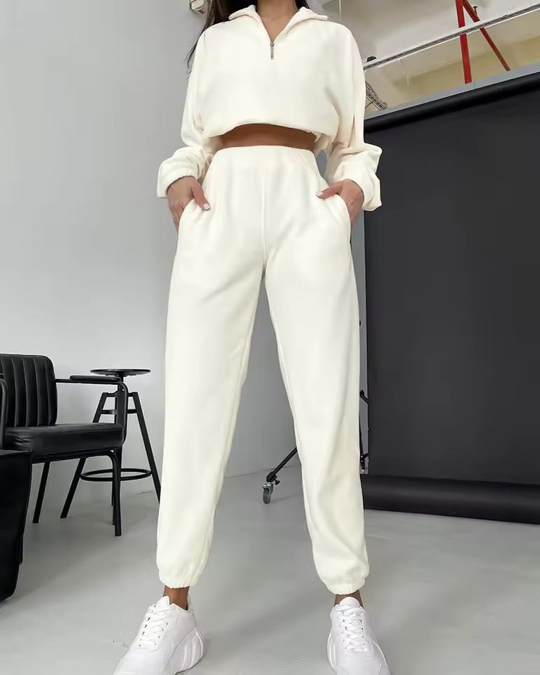 Dieses Casual Damen Zweiteiler-Set vereint Komfort, Stil und moderne Schlichtheit in einem vielseitigen Outfit. Das lose geschnittene Langarm-Top bietet angenehme Bewegungsfreiheit, während die Slim Fit Hose die Figur elegant betont und eine schlanke Silhouette zaubert.