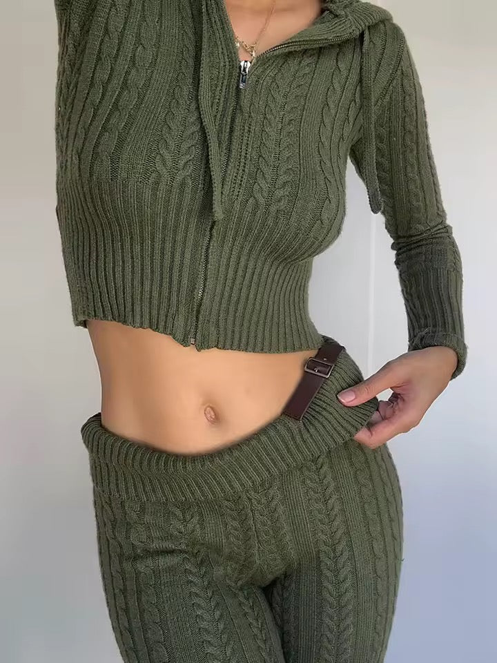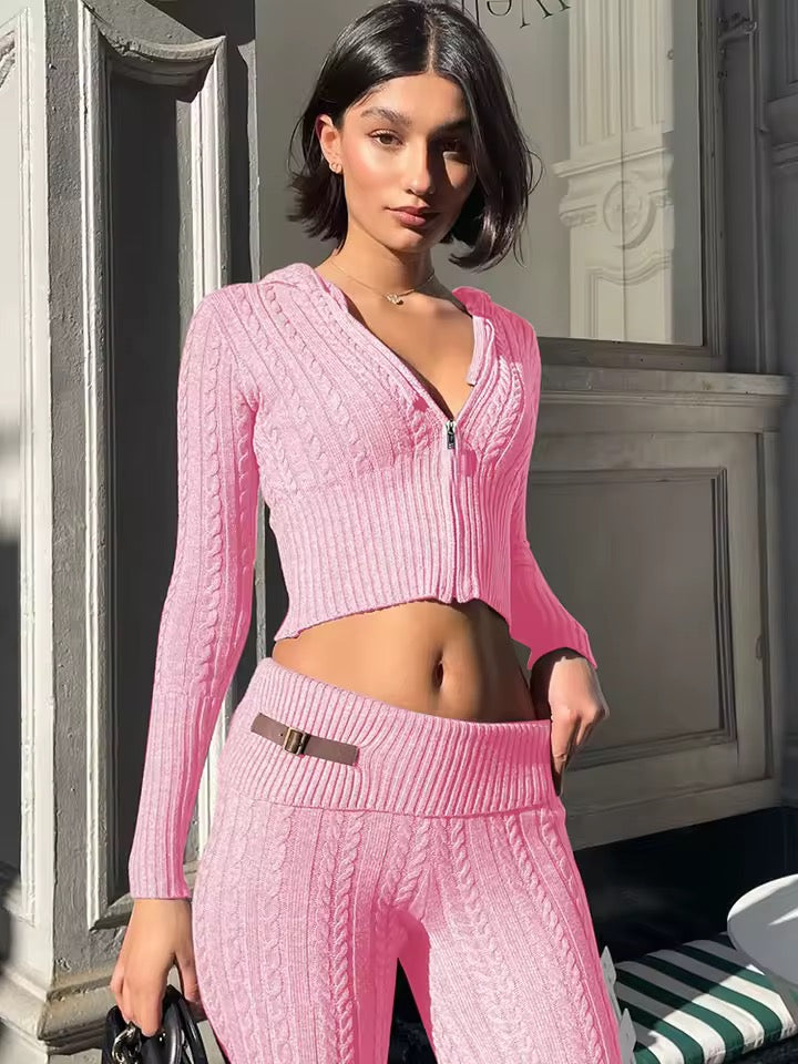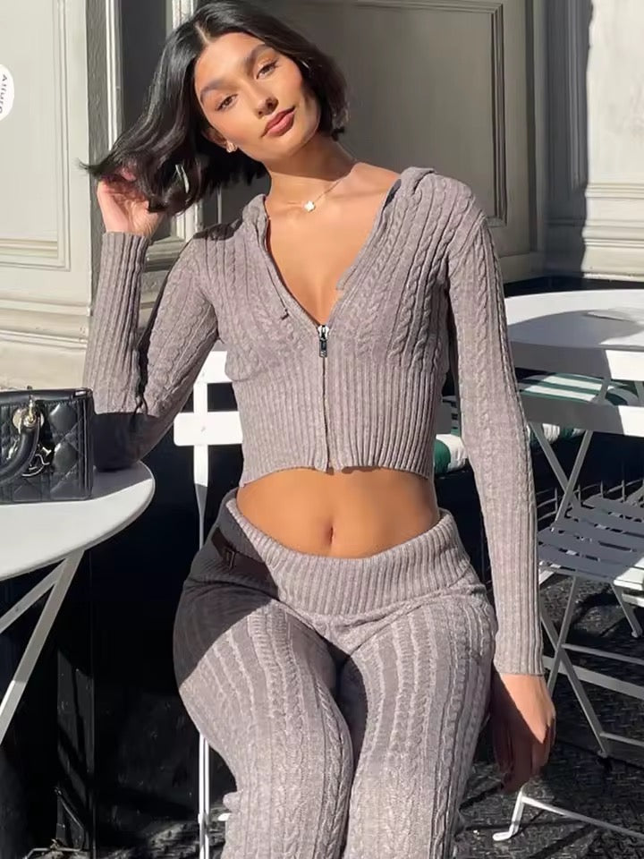 Entdecke das perfekte Zusammenspiel aus Komfort und Stil mit dem Fantoye Damen Zweiteiler-Set. Dieses modische Set besteht aus einem gemütlichen Langarm-Strickpullover mit praktischer Kapuze und Reißverschluss sowie einer langen, schmal geschnittenen Hose. Die hochwertige Strickqualität sorgt je nach Variante für ein angenehmes Tragegefühl – wahlweise als verdickter Winterpullover für kalte Tage oder als dünne, leichte Version für mildere Temperaturen.