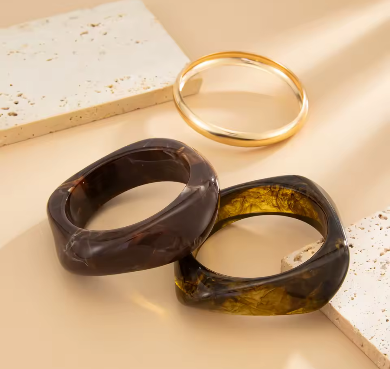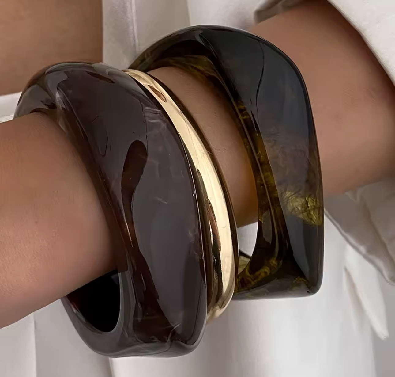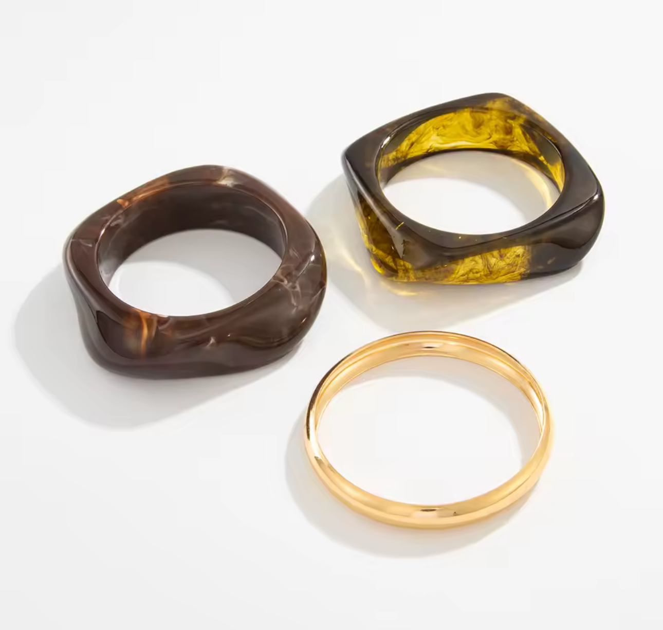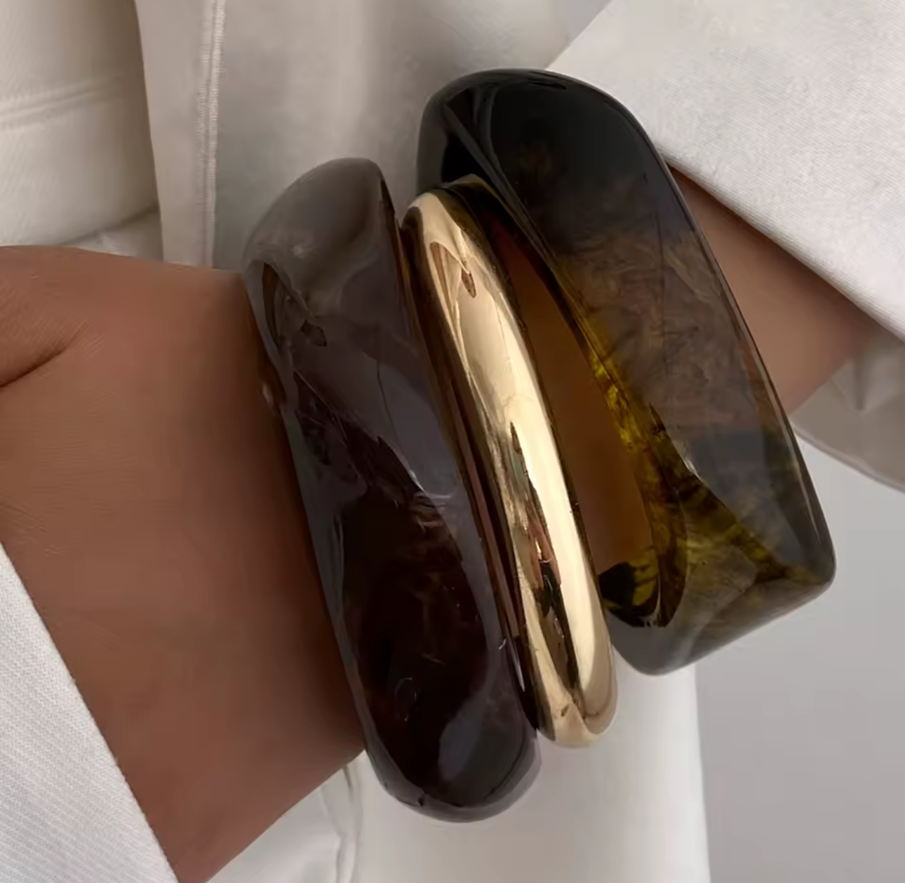 Dieses stilvolle Armband-Set von Ingemark vereint ethnischen Charme, Vintage-Ästhetik und moderne Steampunk-Elemente. Die unregelmäßigen Harz- und Acryl-Designs in drei unterschiedlichen Stilen sorgen für ein einzigartiges, modisches Statement.