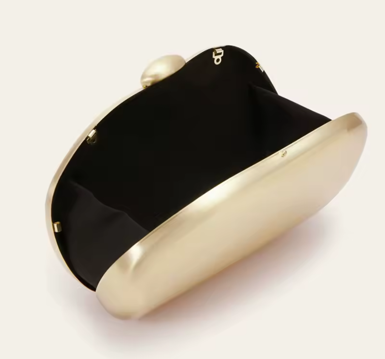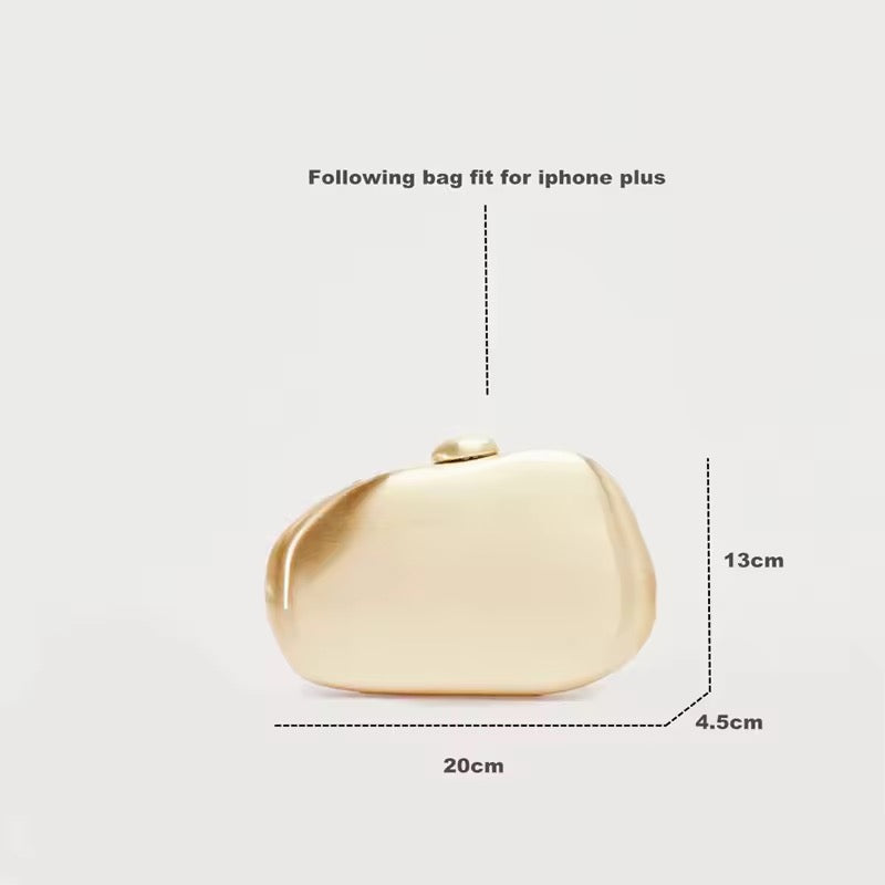 Die kompakte Form bietet Platz für Smartphone, Geldbörse und Essentials, während die stabile Metallstruktur einen luxuriösen Look verleiht. Ideal für Frauen, die Stilbewusstsein und Eleganz in jedem Outfit zeigen möchten.
