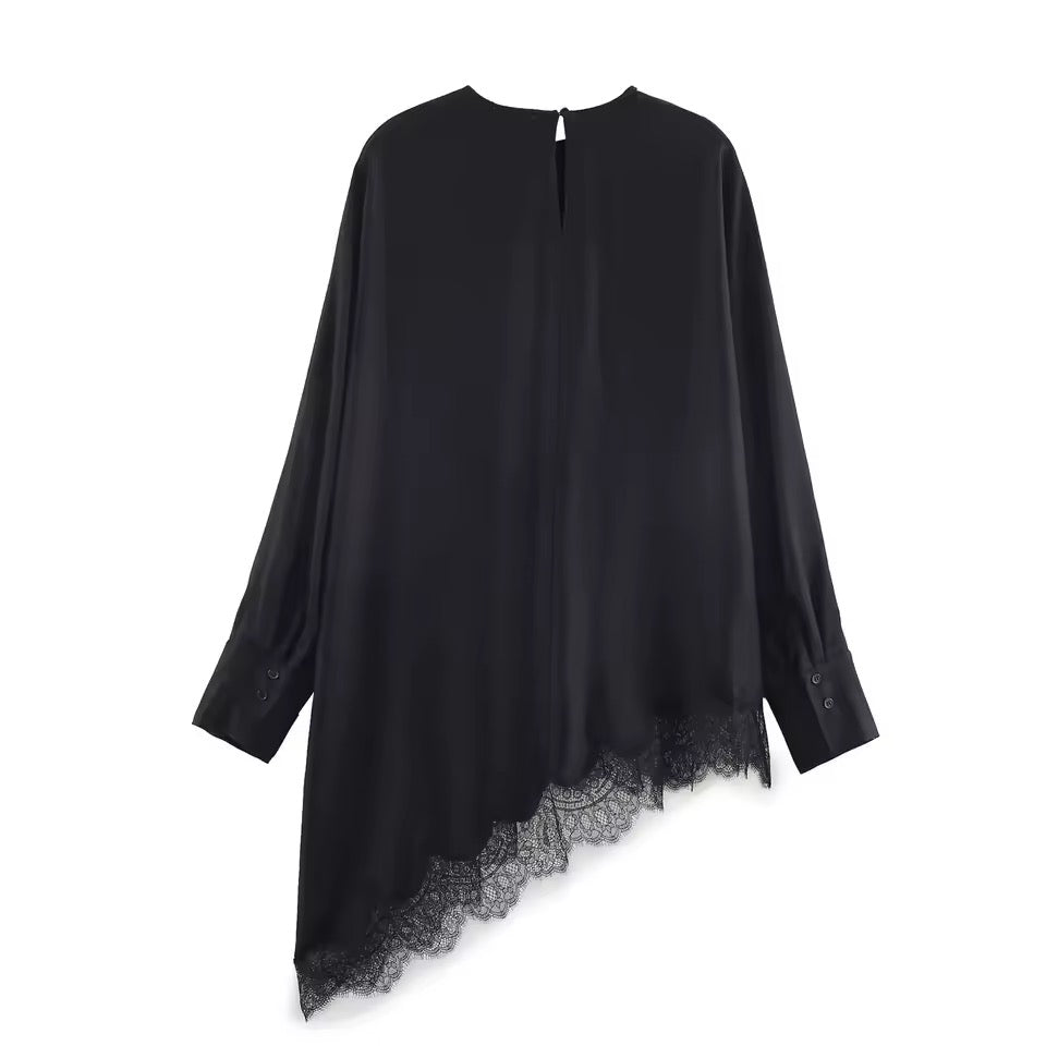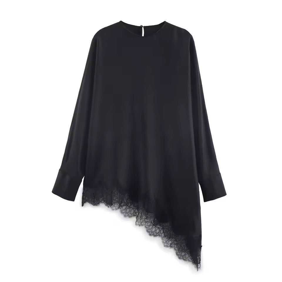 Diese elegante Damenbluse von TFMLN vereint stilvolles Design mit lässigem Komfort. Der klassische O-Ausschnitt und die langärmlige Passform sorgen für einen femininen Look, während der asymmetrische Spitzensaum einen modischen Akzent setzt und die Bluse besonders einzigartig macht.