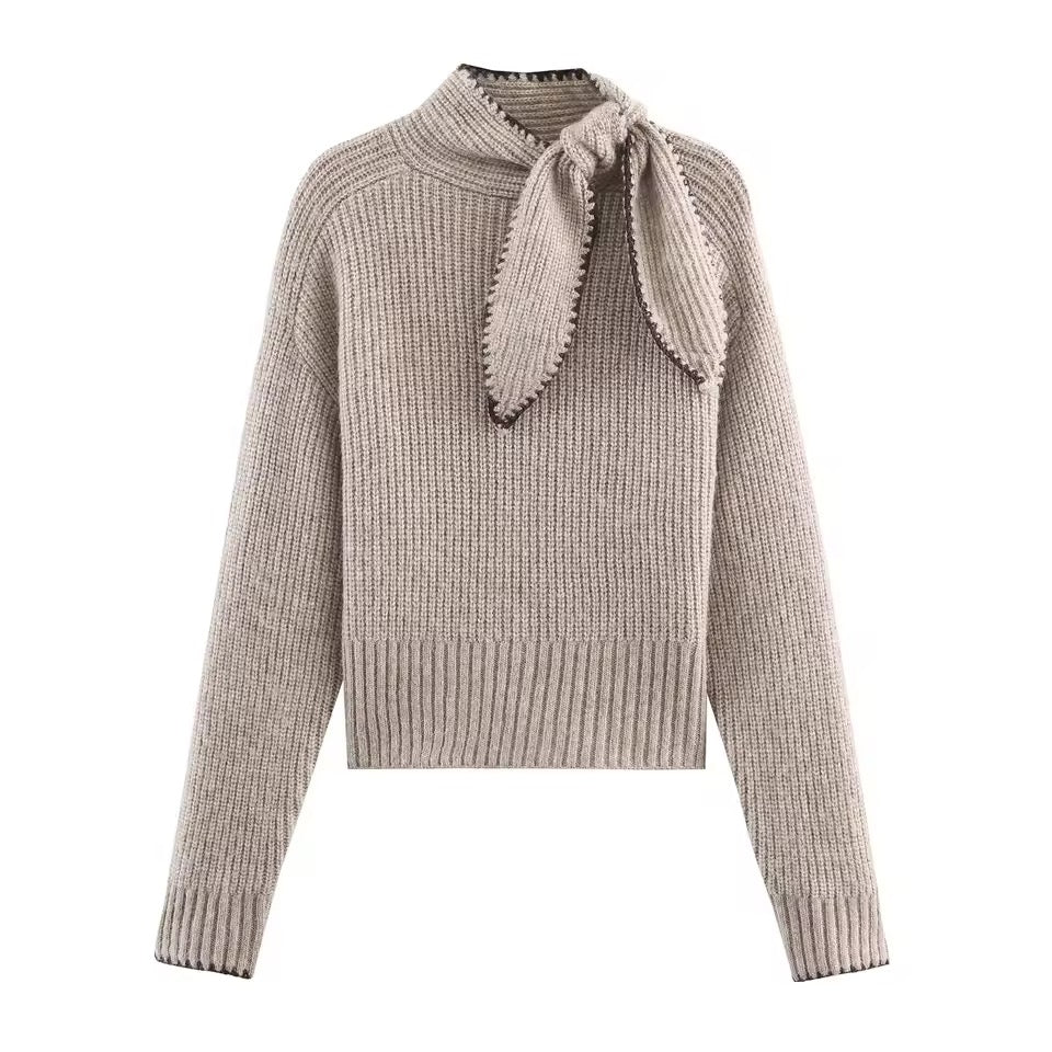 Dieser neue Damenpullover im europäischen Stil verbindet Eleganz mit modernem Komfort. Das figurschmeichelnde Design setzt Ihre Silhouette dezent in Szene, während das zarte Schleifendetail einen femininen, stilvollen Akzent setzt.