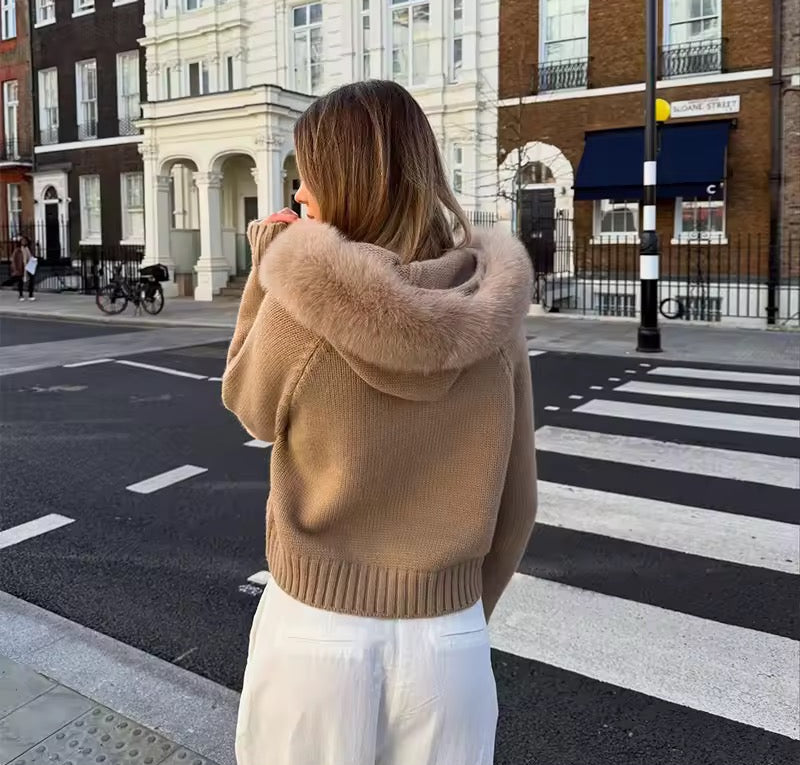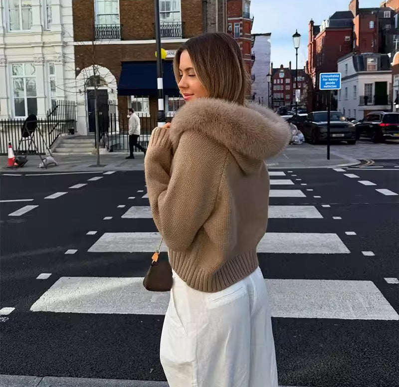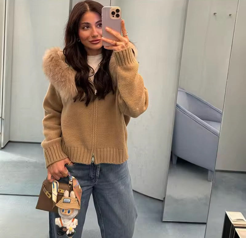 Dank des durchgehenden Reißverschlusses lässt sich die Strickjacke bequem an- und ausziehen und vielseitig kombinieren – ob offen getragen über einem Shirt oder geschlossen als warmer Pullover. Die Kapuze bietet zusätzlichen Schutz vor Wind und Kälte und macht den Look lässig und alltagstauglich.