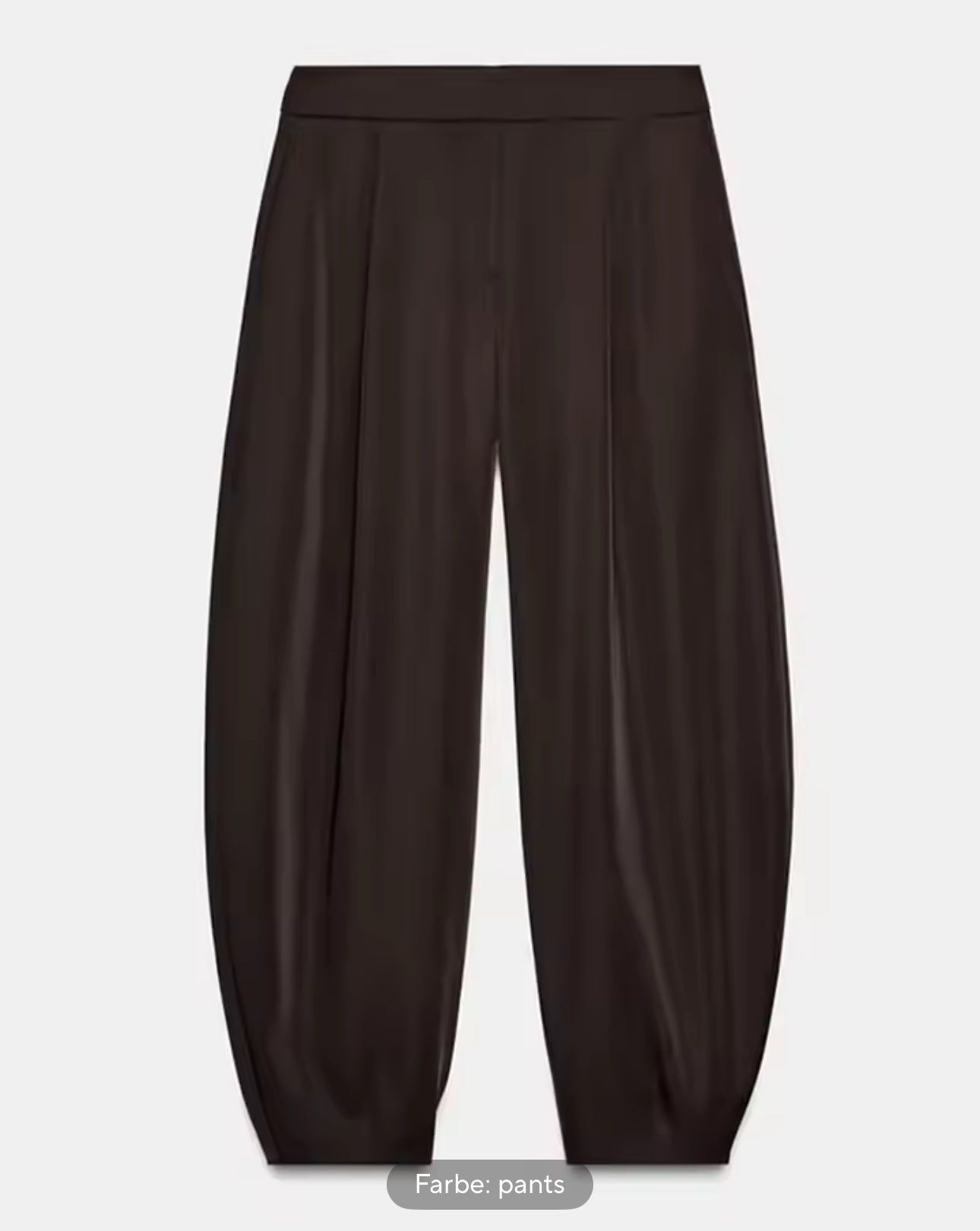 Der einfarbige Look wirkt besonders hochwertig und lässt sich mühelos kombinieren – ideal zum Pendeln, für Business-Meetings, Events oder als modisches Herbst-Outfit. Das weiche Satinmaterial trägt sich angenehm und verleiht dem Set einen luxuriösen Touch.