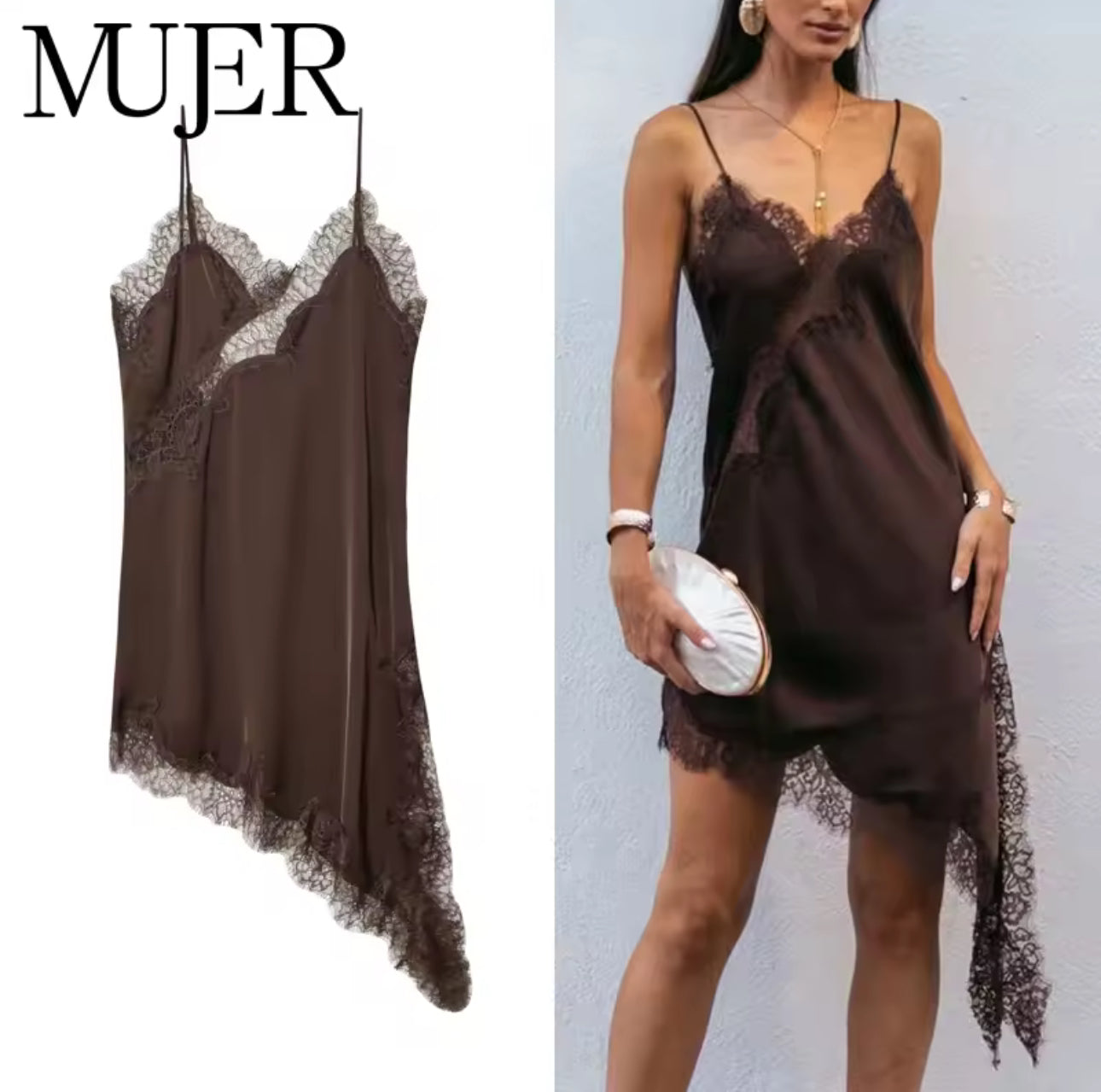 Strahle pure Sommer-Vibes aus mit dem Cami-Kleid – ein echtes Fashion-Statement für mutige Frauen mit Stil. Das Kleid kombiniert den angesagten Look mit romantischen Spitzen-Details und einem asymmetrischen Schnitt, der deine Figur perfekt zur Geltung bringt.