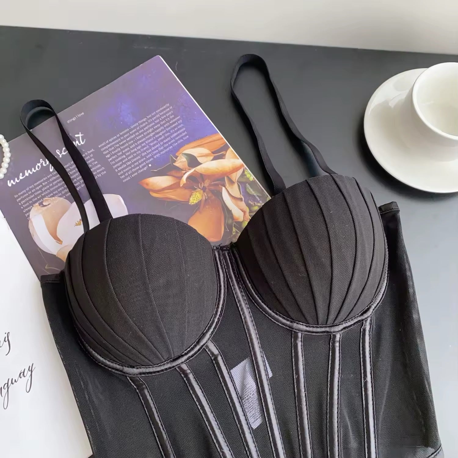 Das SINGREINY Fashion Solid Korsett Dessous Top für Damen verbindet Retro-Charme mit modernem Sexappeal. Mit seinem transparenten Mesh-Stoff und dem figurbetonten Schnitt zaubert es eine verführerische Silhouette. Der rückseitige, rückenfreie Design und die verstellbaren Träger sorgen für einen frechen, gleichzeitig eleganten Look. Dieses Tank Top ist perfekt für besondere Anlässe oder einen aufregenden Abend am Strand. Ein Must-Have für modebewusste Frauen, die ihre sexy Seite zeigen und gleichzeitig in Komfort und Stil glänzen möchten.