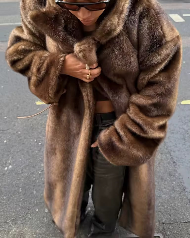 Verleihen Sie Ihrem Winterlook ein Hauch von Luxus – mit diesem langen Kunstfellmantel für Damen 2025, der Stil, Komfort und moderne High-Street-Ästhetik perfekt vereint. Der Mantel besteht aus hochwertigem, besonders weichem Plüschmaterial, das nicht nur optisch beeindruckt, sondern auch zuverlässig warm hält – selbst an den kältesten Tagen.