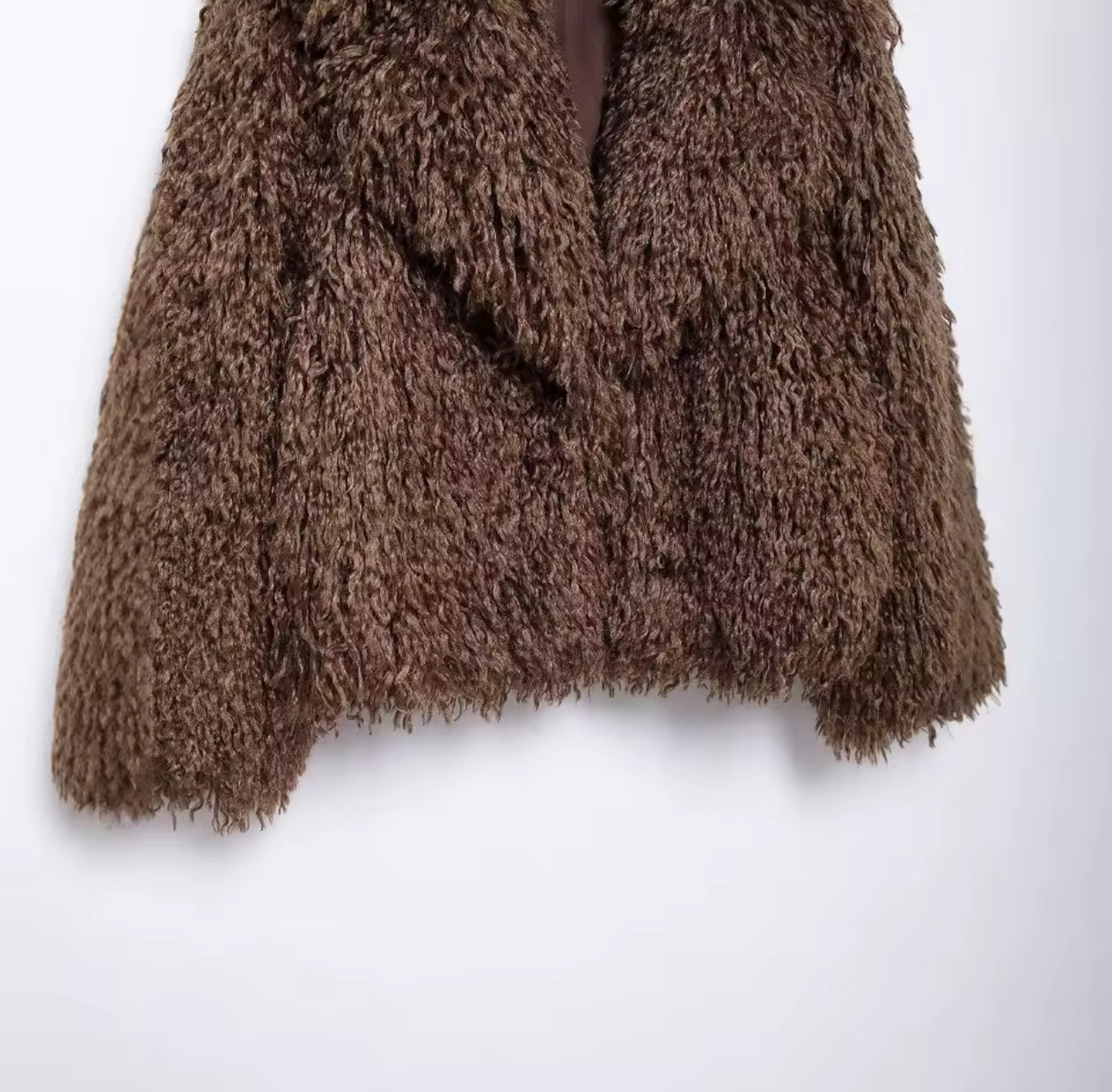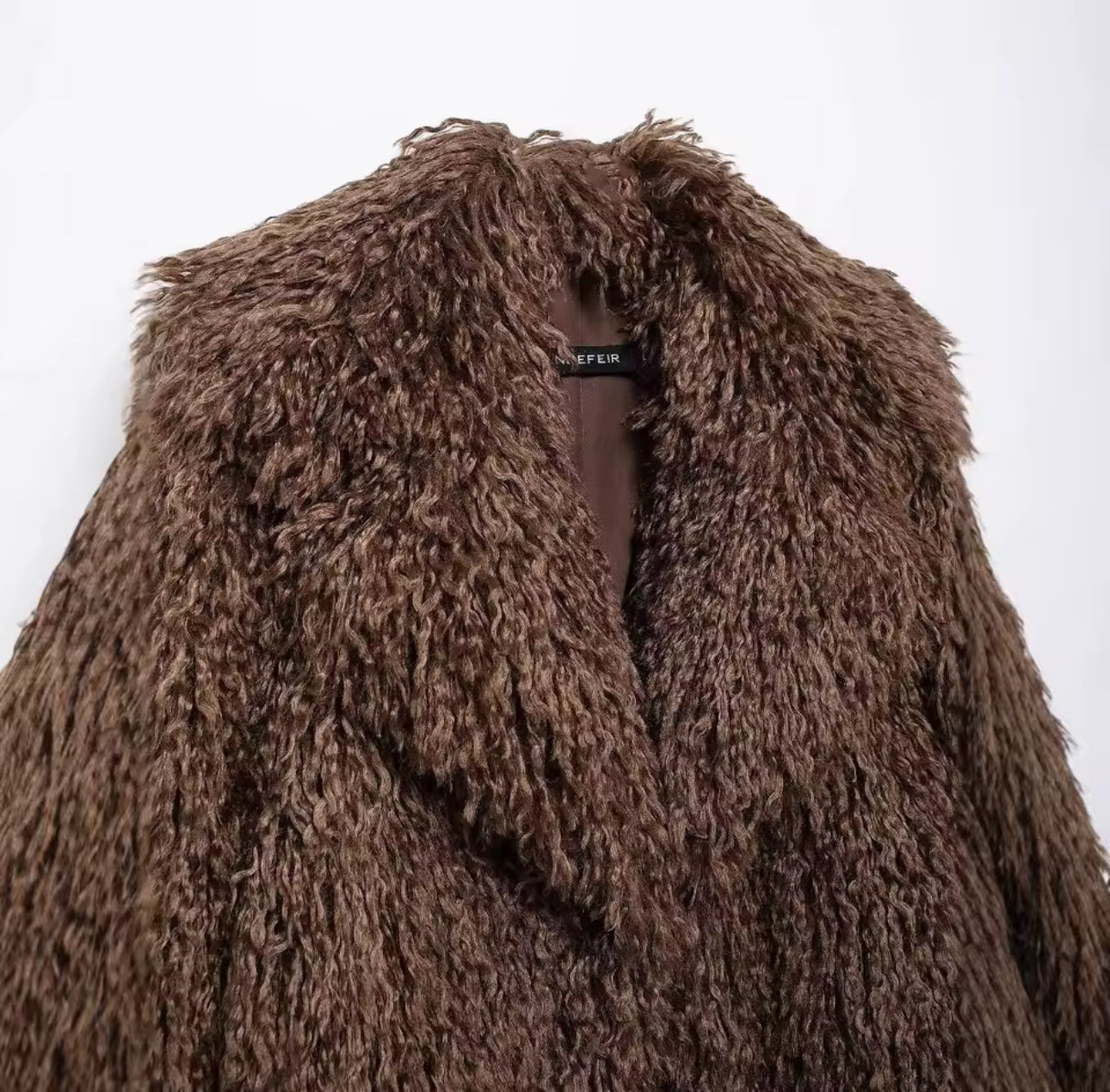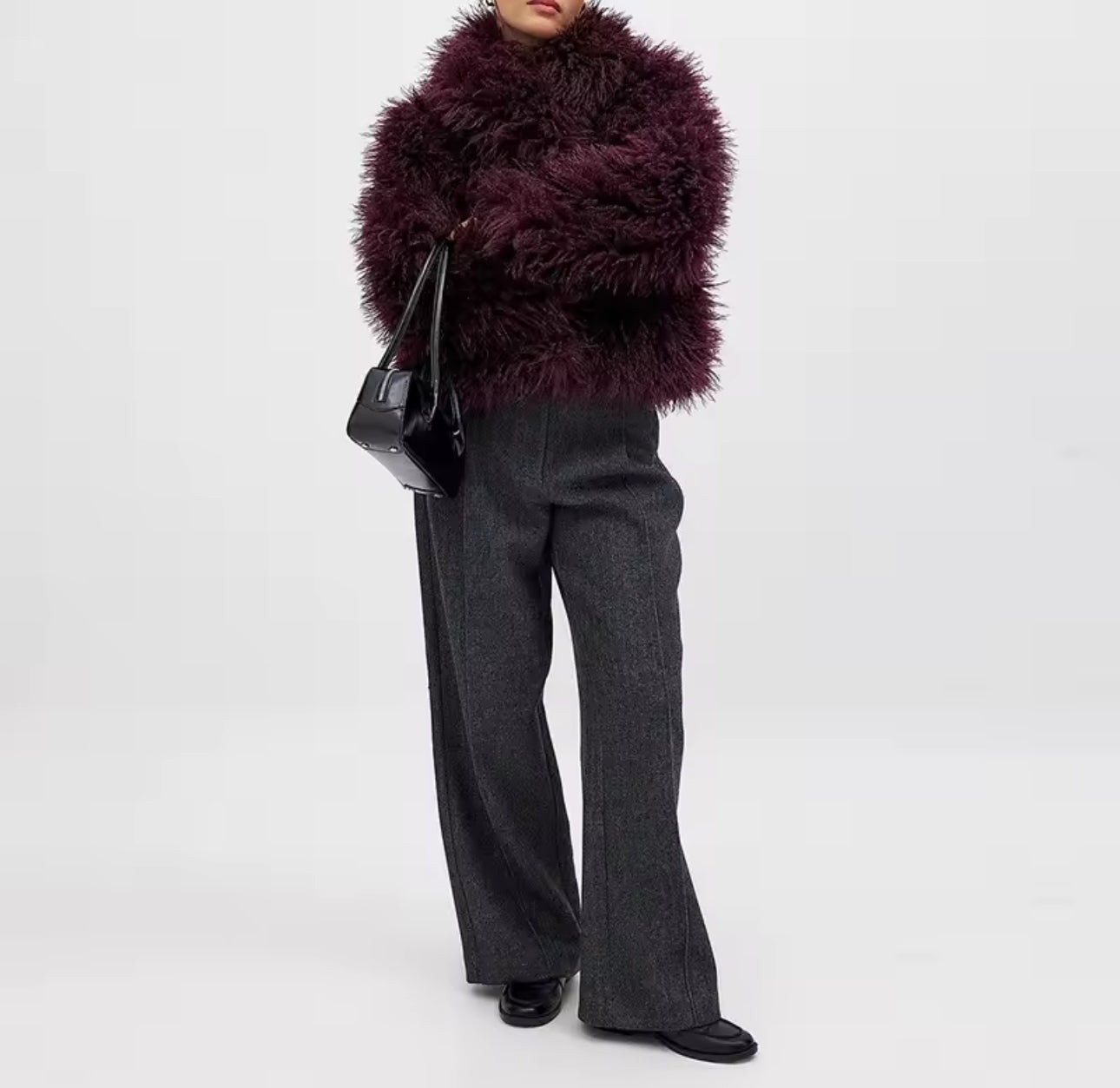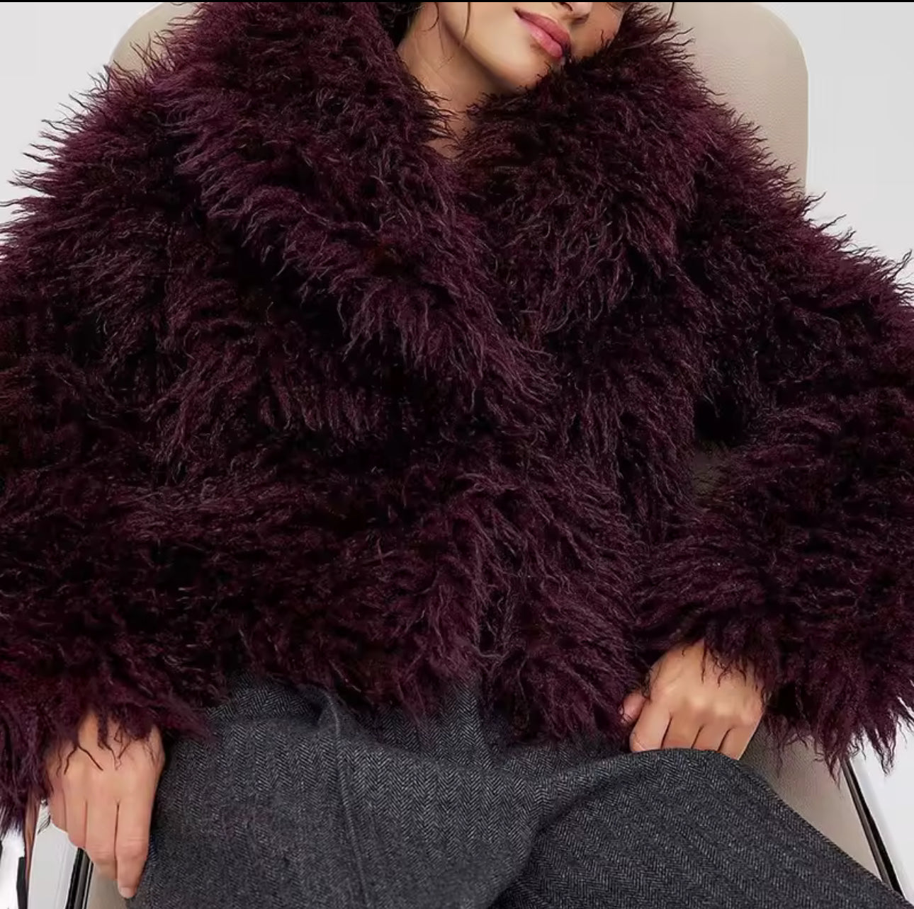 Dieser modische Kunstpelzmantel in edlem Burgunderrot vereint Wärme, Stil und Komfort. Das weiche, verdickte Material sorgt für angenehme Wärme an kalten Tagen, während der mittellange Schnitt eine feminine Silhouette unterstreicht.