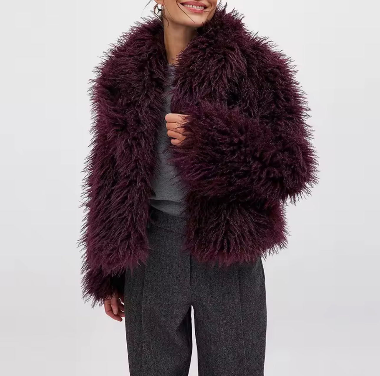 Modischer Kunstpelzmantel in Burgunderrot – Warm, elegant und vielseitig