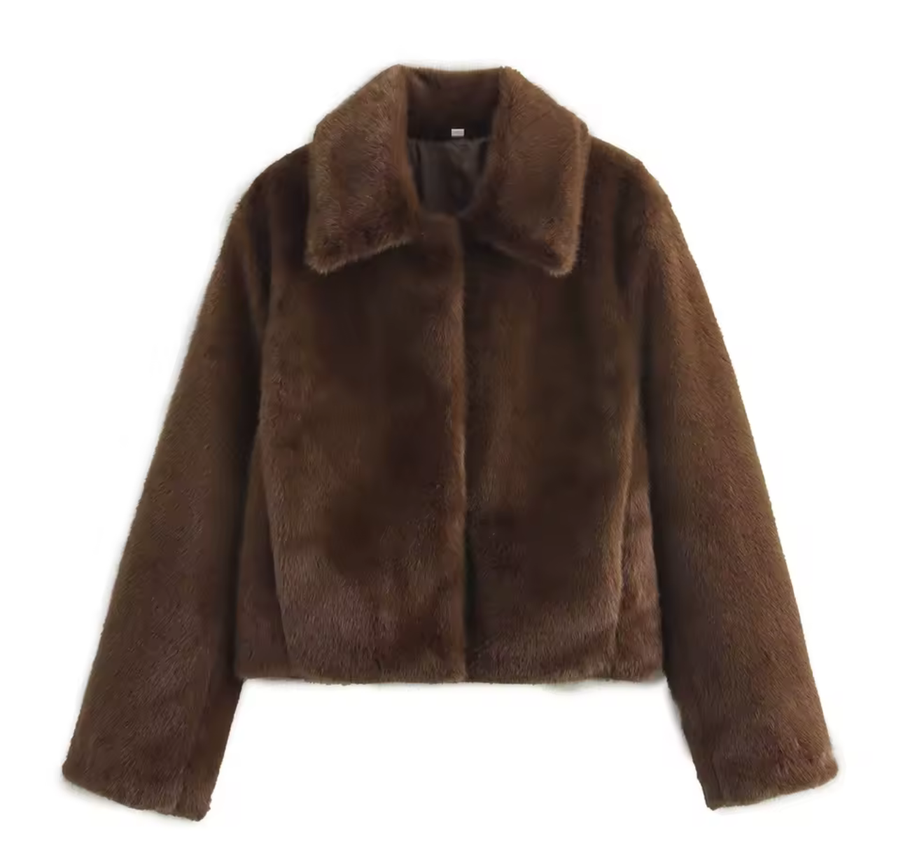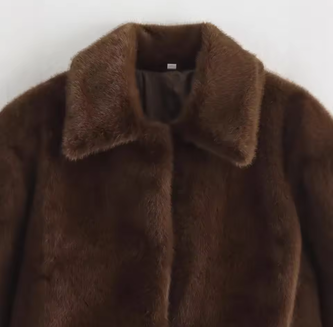 Eleganter Damen-Kunstpelzmantel – Modischer Langarm-Wintermantel im Street-Style