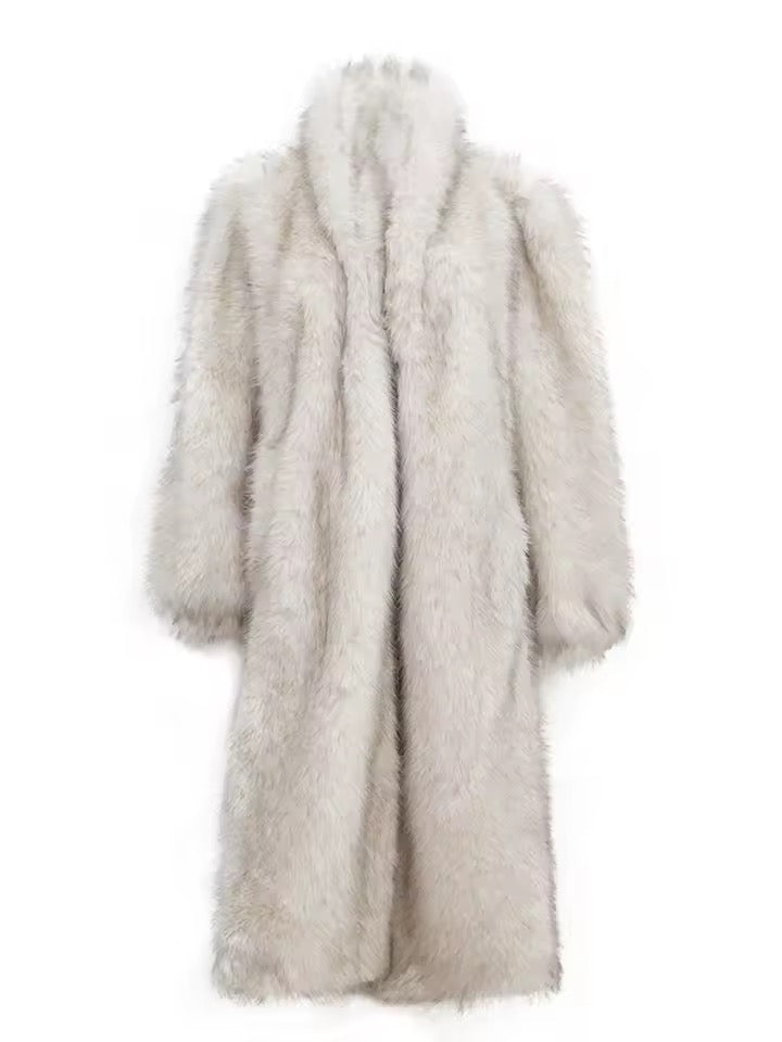 Langer Street-Style-Mantel aus hochwertigem Öko-Kunstpelz