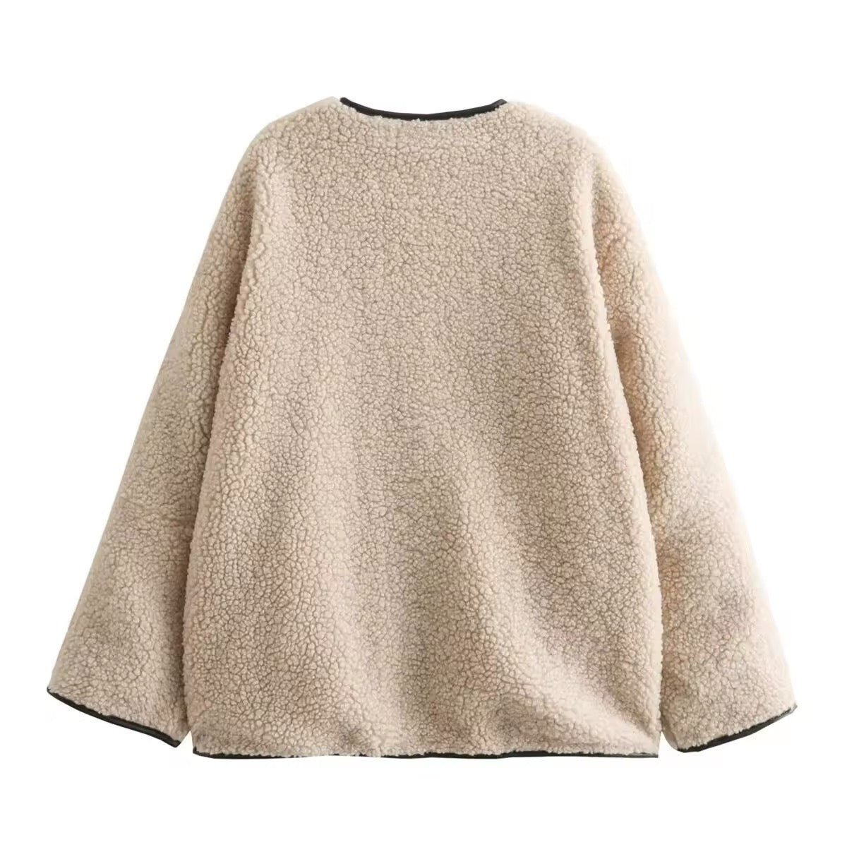 Verleihen Sie Ihrer Herbst- und Wintergarderobe mit der ZBZA Damen Kunstwolle Jacke einen Hauch von Retro-Charme! Diese lässige, einfarbige Jacke besticht durch ihren lockeren Schnitt und den klassischen Rundhalsausschnitt, der sowohl Komfort als auch Stil vereint. Die langen Ärmel und das einreihige Design sorgen für eine elegante Silhouette, während die praktischen Doppeltaschen nicht nur funktional sind, sondern auch einen zusätzlichen modischen Akzent setzen.