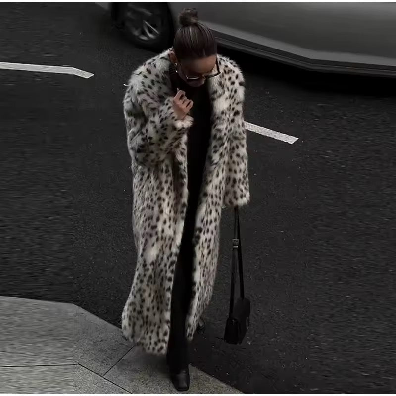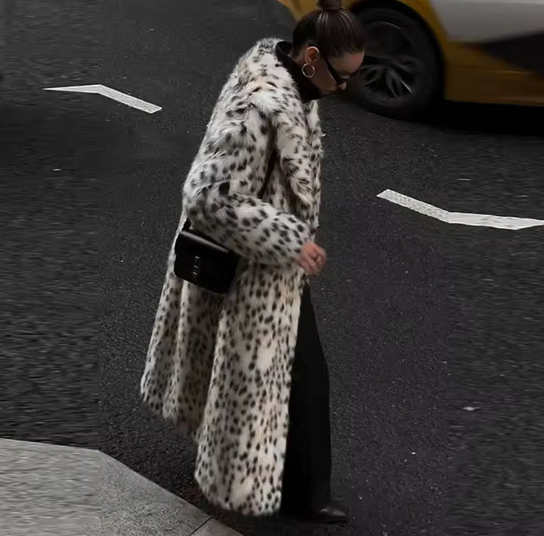 Der Retro-Langmantel mit Leopardenmuster verbindet modisches Statement und gemütlichen Tragekomfort. Gefertigt aus hochwertigem, verdicktem Kunstpelz, bietet er angenehme Wärme und ein auffälliges Design – perfekt für kalte Wintertage.
