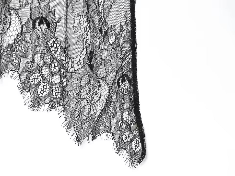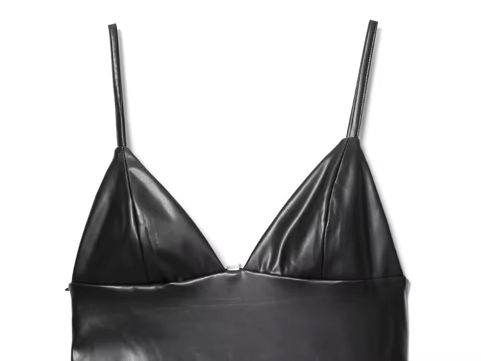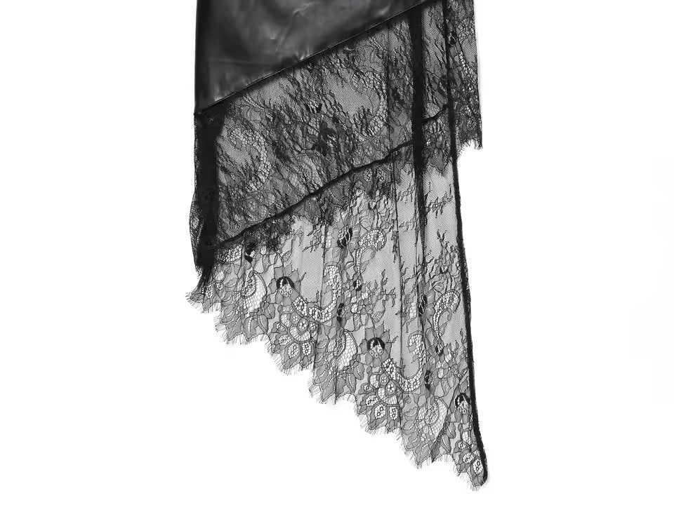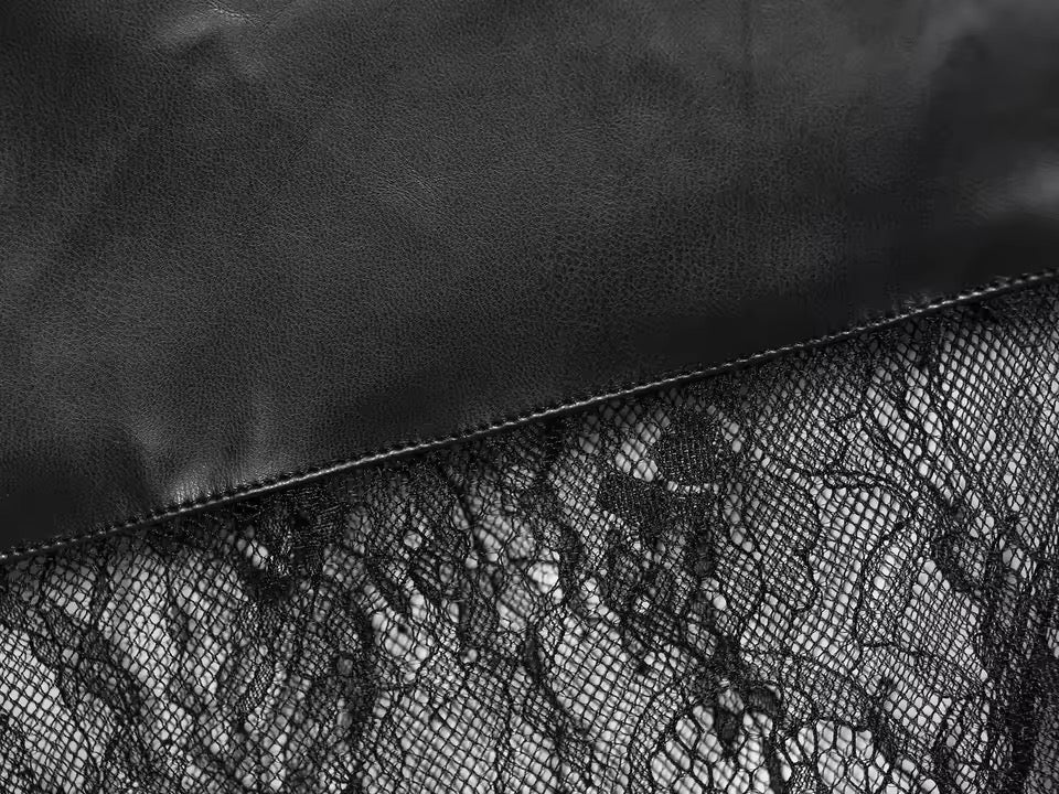 Die edle Spitzenverzierung trifft auf glänzende PU- / Kunstleder-Patchwork-Elemente, die dem Kleid einen markanten, modischen Kontrast verleihen. So entsteht ein einzigartiger Look, der zwischen sinnlich & kraftvoll balanciert – ideal für Herbst-Events, Abendanlässe und besondere Momente.