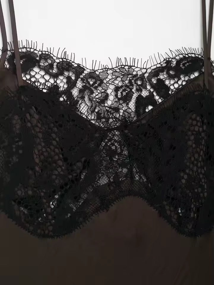 Dieses feminine Slip-Midikleid vereint Eleganz und Sexiness in einem modernen Design. Das rückenfreie Satin-Oberteil sorgt für einen verführerischen Look, während die Spitzen-Details dem Kleid eine elegante Note verleihen. Der asymmetrische Schnitt unterstreicht die Figur und sorgt für einen fließenden, stylischen Fall.