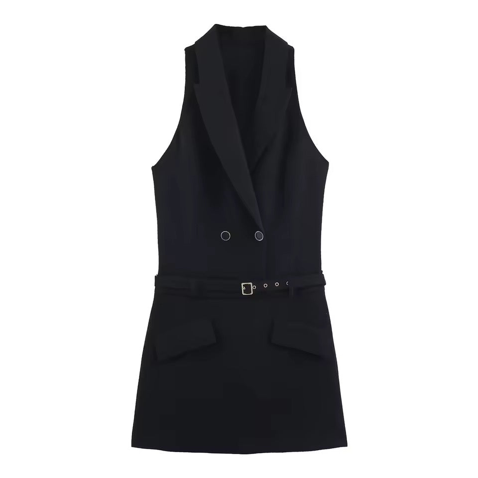 Dieses stylische Mini-Kleid im Anzug-Stil vereint Eleganz und Komfort für moderne Frauen. Perfekt für Büro, Streetstyle oder Casual-Anlässe, setzt es mit seinem ärmellosen Schnitt und dem integrierten Gürtel modische Akzente, während die solide Farbe vielseitig kombinierbar ist.