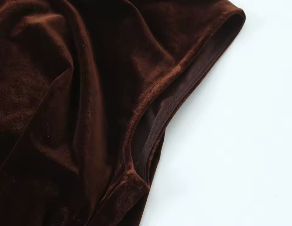 Der edle Samtstoff sorgt für einen luxuriösen Griff und einen glamourösen Auftritt, ideal für Abendveranstaltungen, Partys oder elegante Casual-Events. Die Kombination aus Komfort und Stil macht das Kleid zu einem vielseitigen Must-Have für modebewusste Frauen.