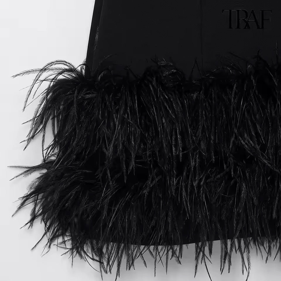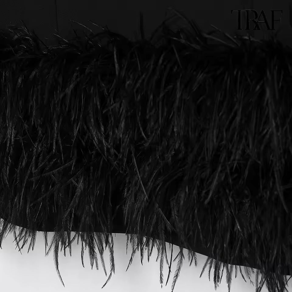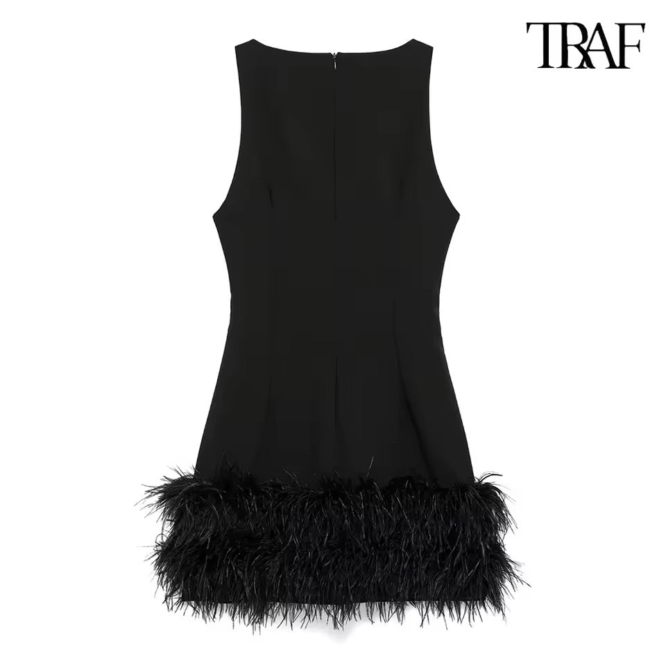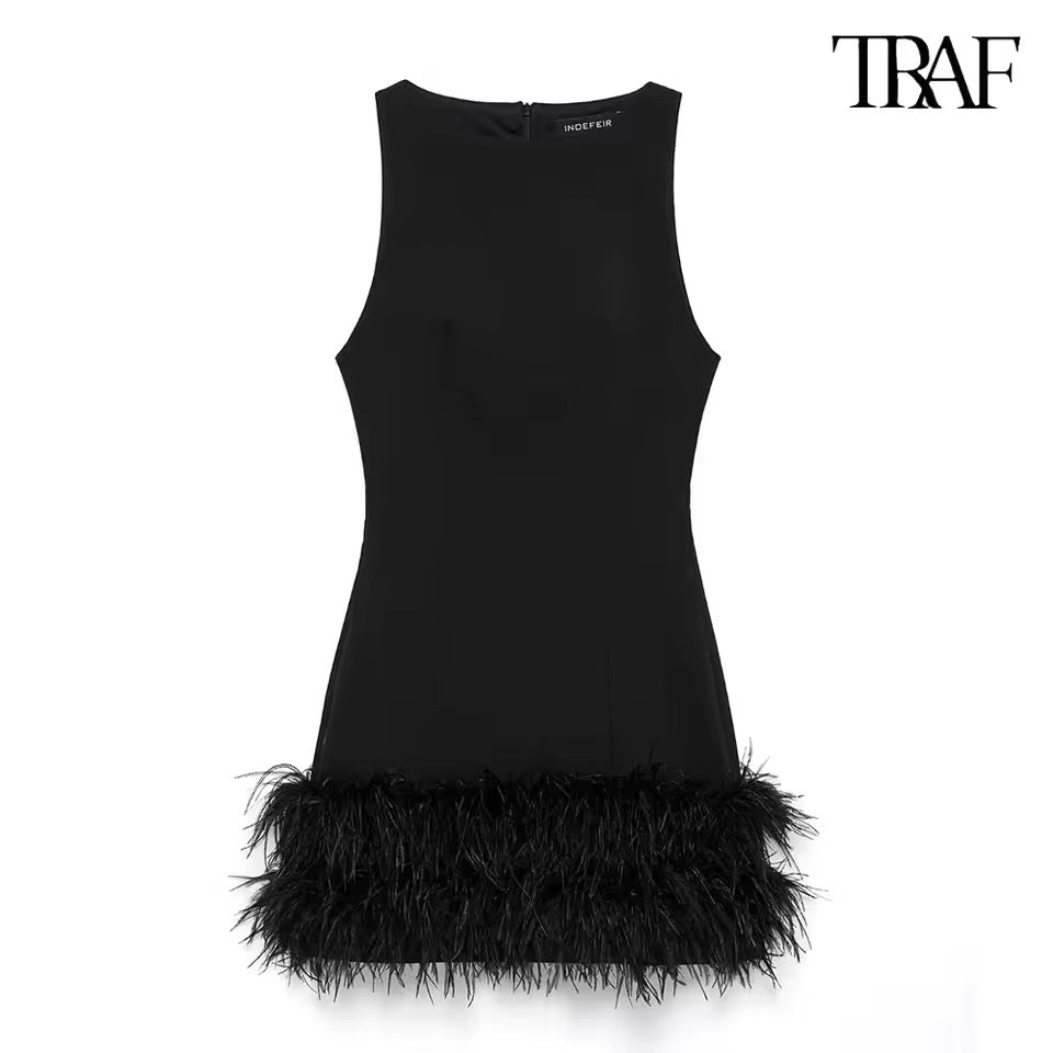 Dieses elegante Minikleid von HXAO kombiniert stilvolle Details mit modernem Design. Die federverzierte Oberkante verleiht dem Kleid einen einzigartigen, femininen Akzent, während das ärmellose, kurze Design für einen schicken und gleichzeitig komfortablen Look sorgt. Perfekt für Partys, Abendveranstaltungen oder lässige Ausgeh-Looks.
