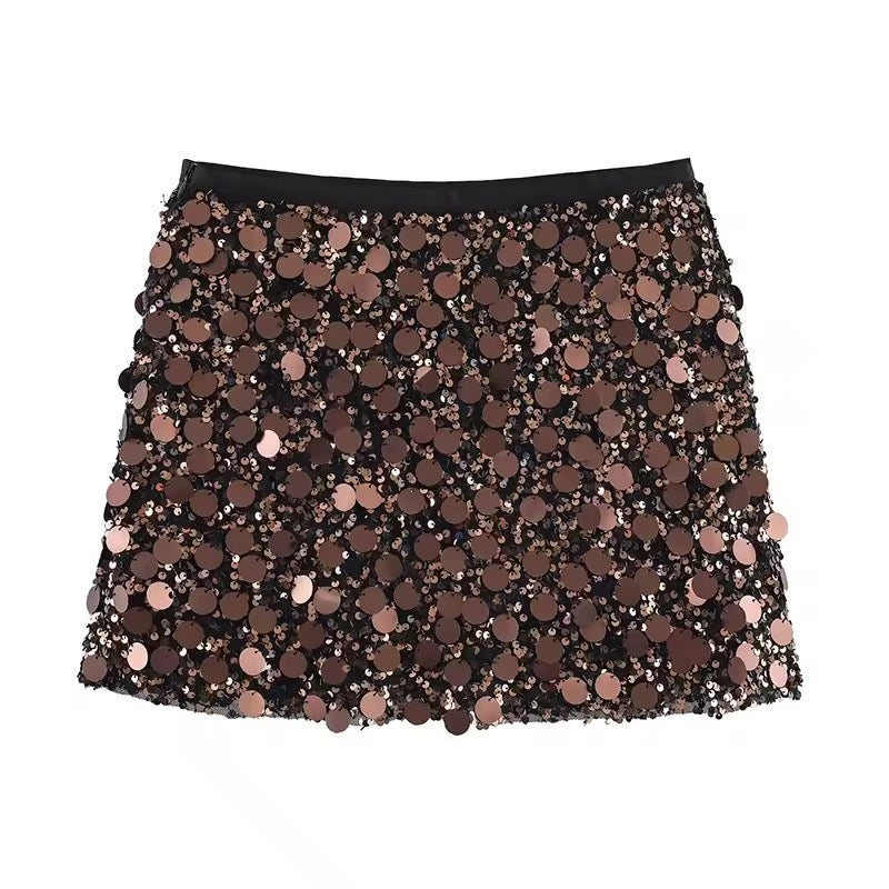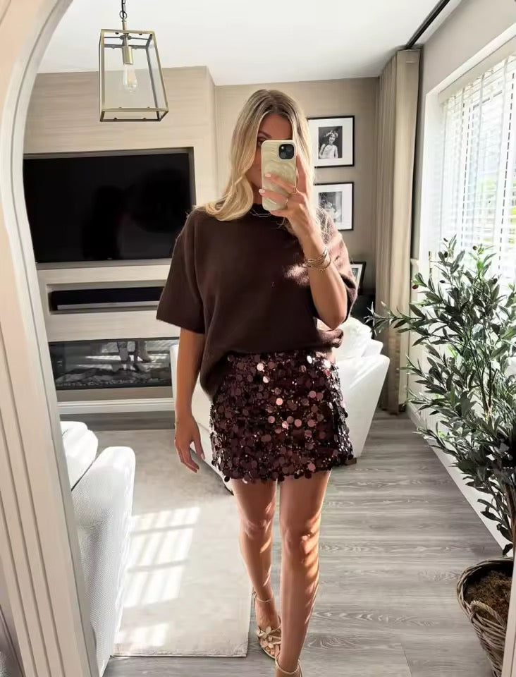 Setze in diesem Sommer ein glänzendes Fashion-Statement! Der elegante Pailletten Minirock verbindet sexy Street-Style mit moderner Eleganz. Die funkelnde Oberfläche reflektiert das Licht bei jeder Bewegung und macht den Rock zu einem echten Blickfang – perfekt für Partys, Festivals und trendige City-Outfits.