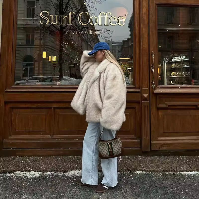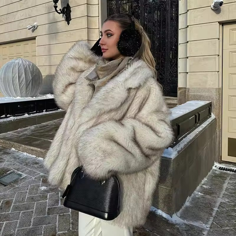 Das verdickte Kunstfell hält angenehm warm und macht die Jacke zur perfekten Oberbekleidung für kalte Wintertage. Der Mantel ist nicht nur ein echter Blickfang, sondern auch unglaublich bequem – ideal für Mädchen und Frauen, die Mode lieben und im Winter nicht auf Style verzichten möchten.