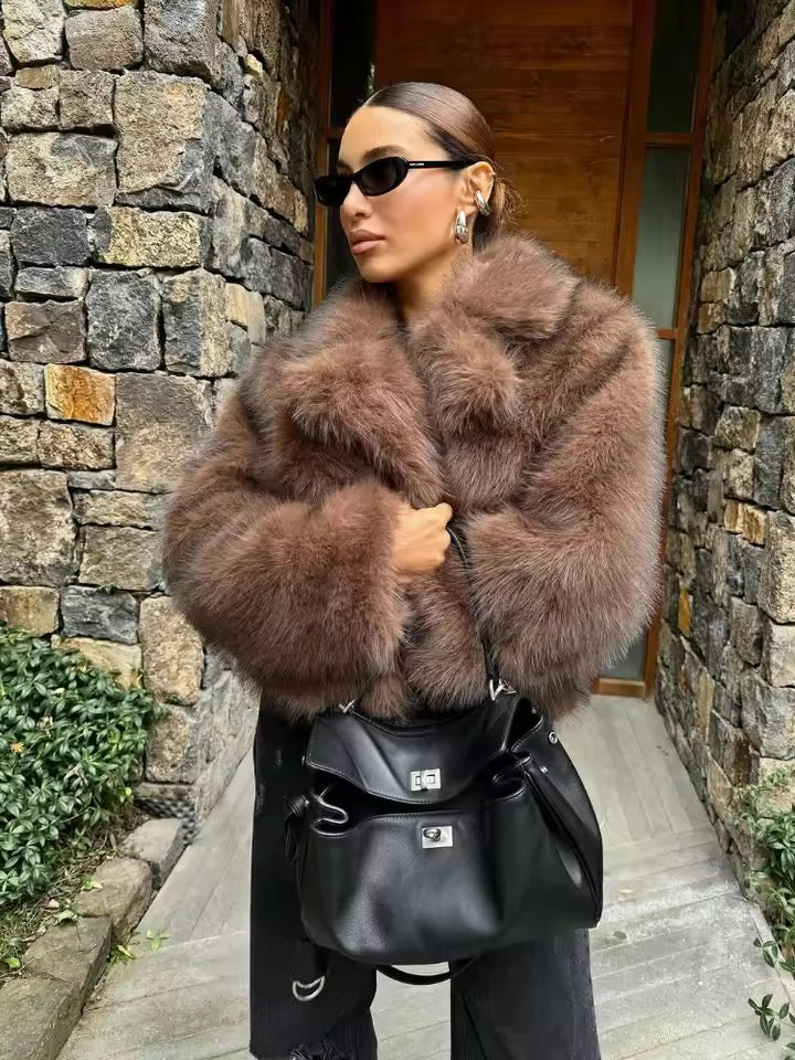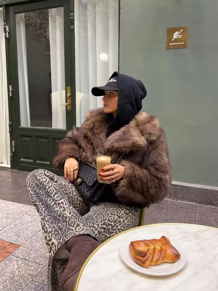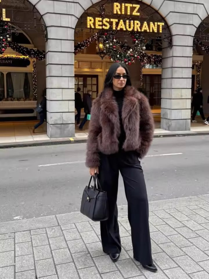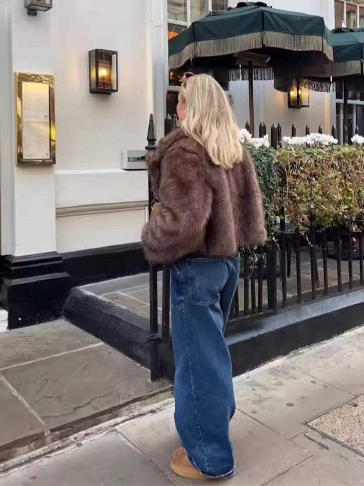 Dieser Vintage Langarm-Pelzmantel für Damen vereint zeitlose Eleganz mit moderner Wärme. Der solide, kuschelweiche Kunstpelz verleiht der Jacke eine luxuriöse Optik, während der klassische drehen-unten Kragen Ihrem Look eine stilvolle, feminine Note schenkt.