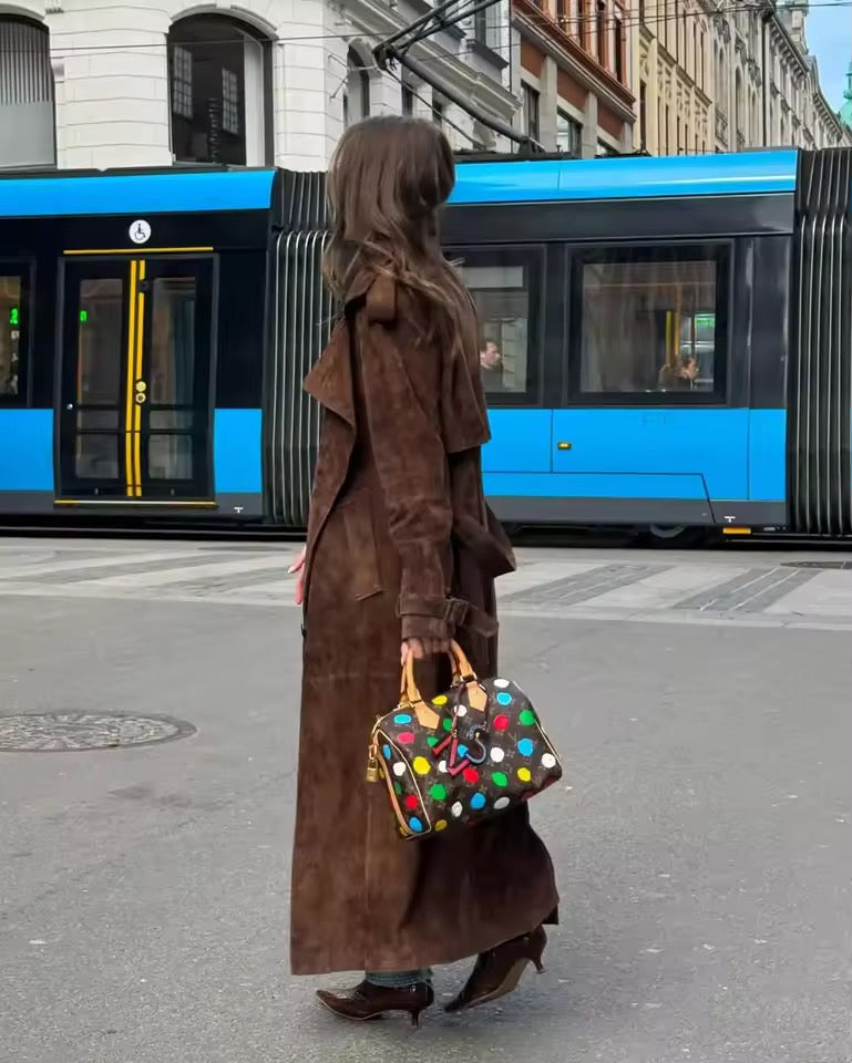 Entdecken Sie den zeitlosen Charme unserer Retro Wildleder langen Jacke für Frauen, die perfekt für die kühleren Monate des Jahres geeignet ist. Diese elegante und vielseitige Jacke kombiniert stilvolles Design mit einem hohen Tragekomfort und wird schnell zu Ihrem neuen Lieblingsstück in der Herbst- und Wintergarderobe.