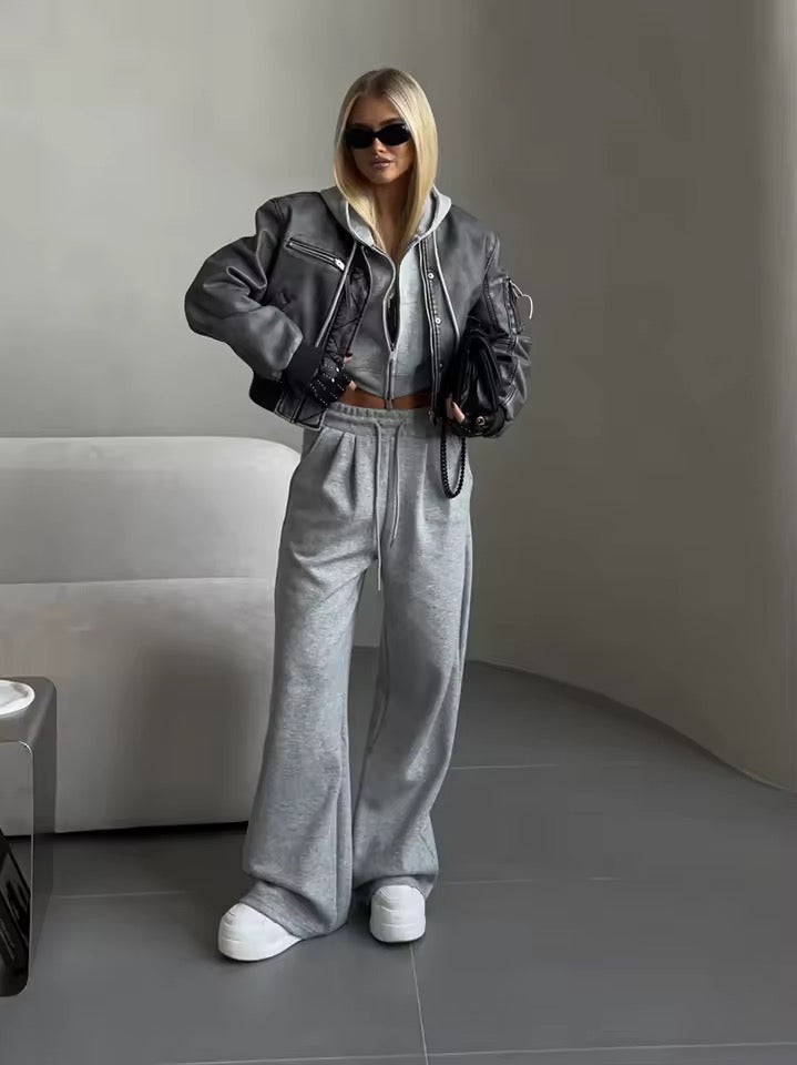 Trage das Set mit chunky Sneakers, Crossbody-Bag & Statement-Sonnenbrille für einen angesagten Streetstyle – oder mit Hausschuhen für stylishes Homewear.