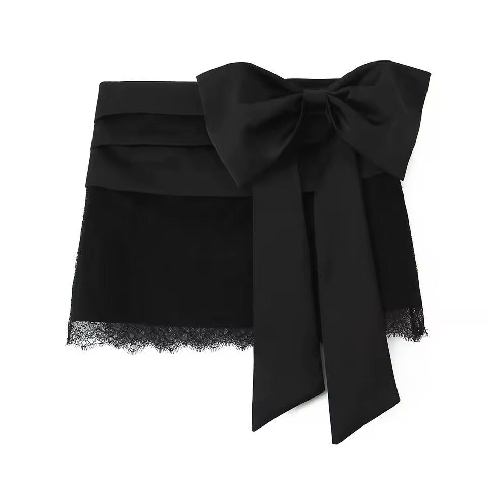 Setze auf modische Eleganz mit dem Damen-Spitzen-Set. Das Set besteht aus einem Oansatz-Langarm-Top mit verspieltem Bogen und einem geraden Mini-Rock mit praktischem Zipper.