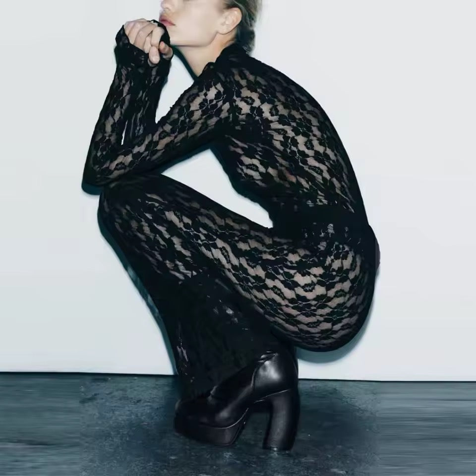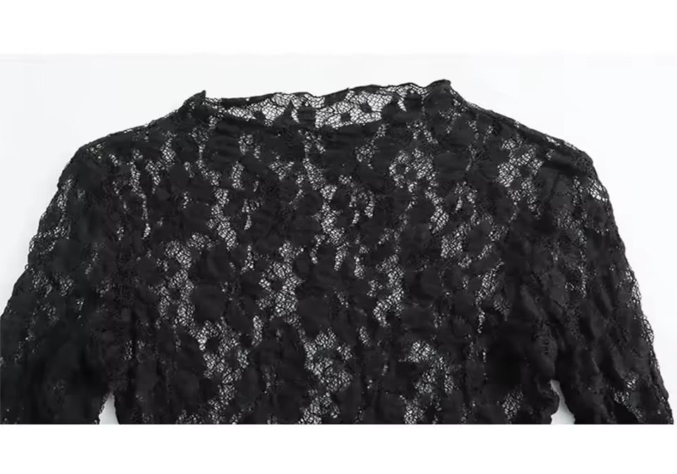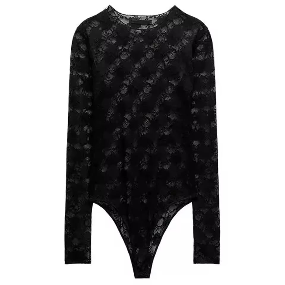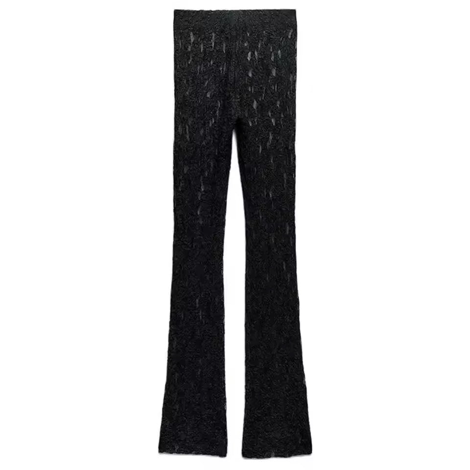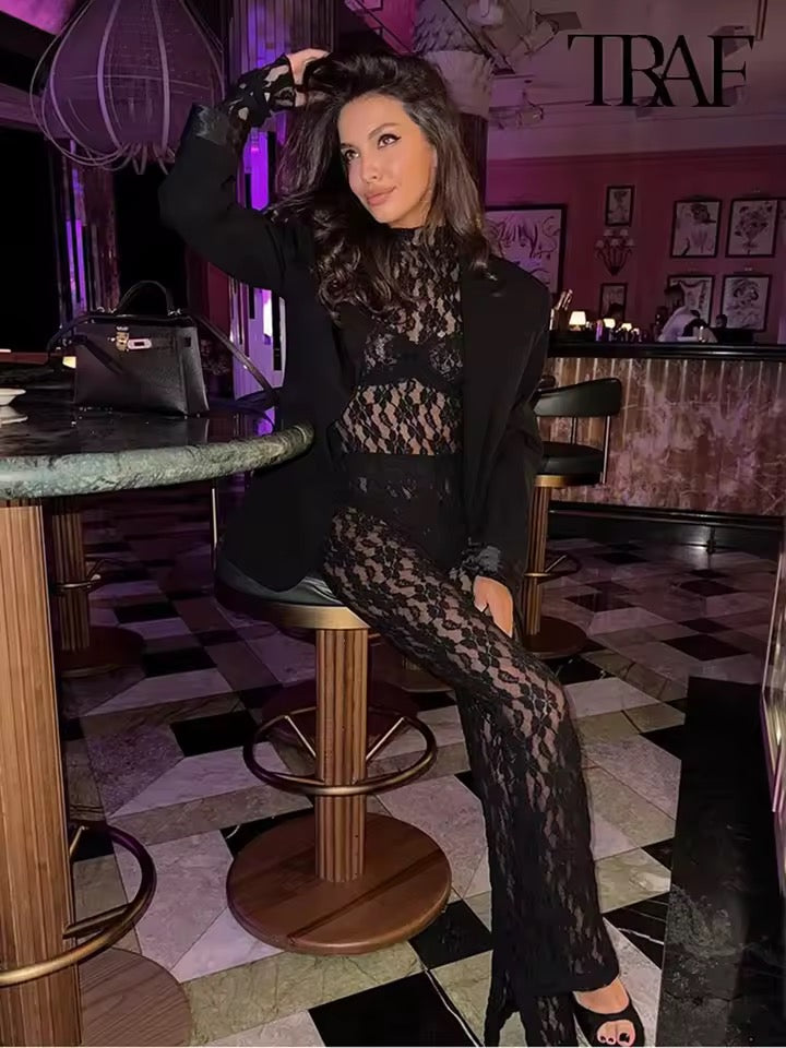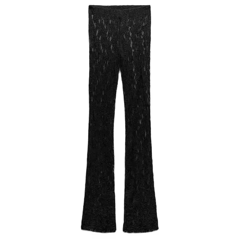 Setze auf verführerischen Style mit dem Damen-Spitzenhosen-Set. Das Set besteht aus einem schmal geschnittenen Oberteil und High-Waist-Hose, gefertigt aus durchscheinender, floraler Spitze, die für einen femininen und sexy Look sorgt.